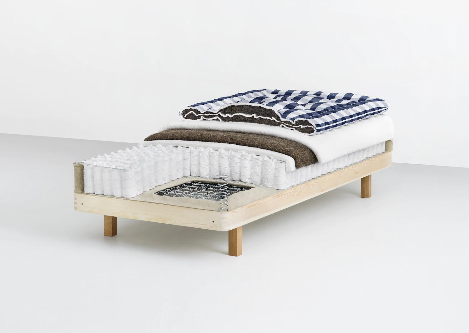 Marquis的床架底座中,用亞麻包裹,具有消音并導出靜電功能。堅固的指形連接方式將松木木板牢牢鎖定,組成了結實的木質床框。所有的結構最終都包裹在我們柔軟耐用的純棉面料中,真正做到精于內,簡于形。