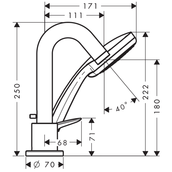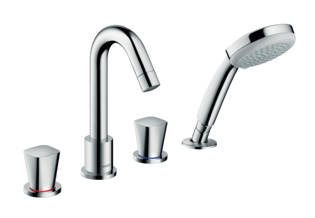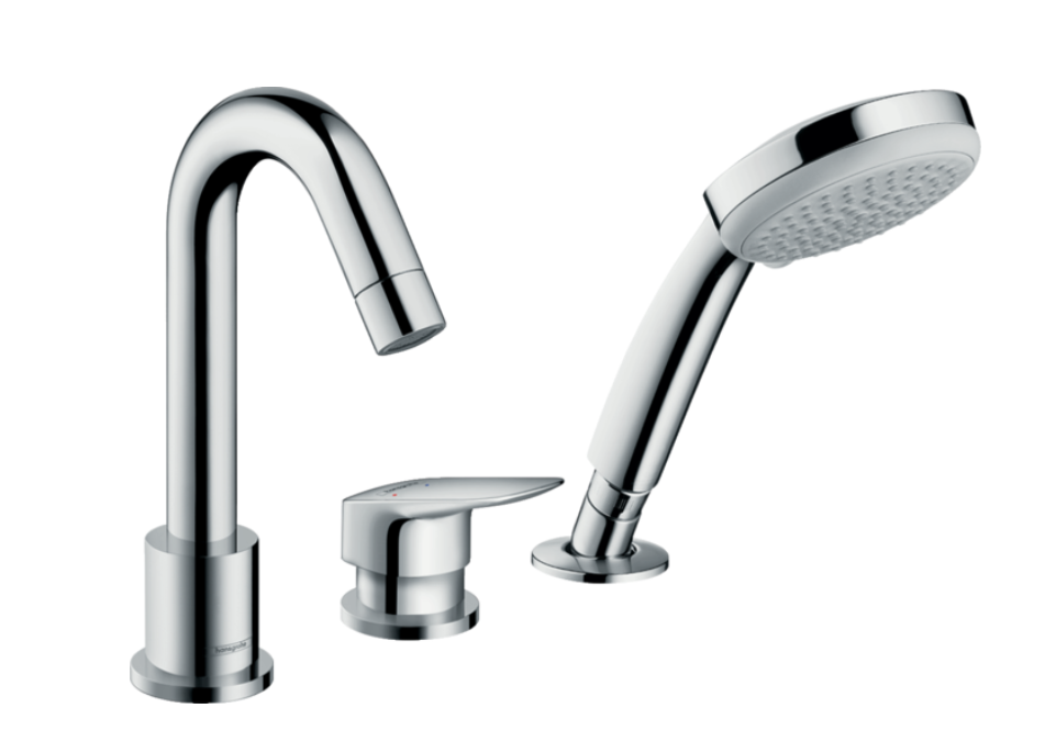 consists of: 3-hole rim mounted single lever bath mixer, hand shower