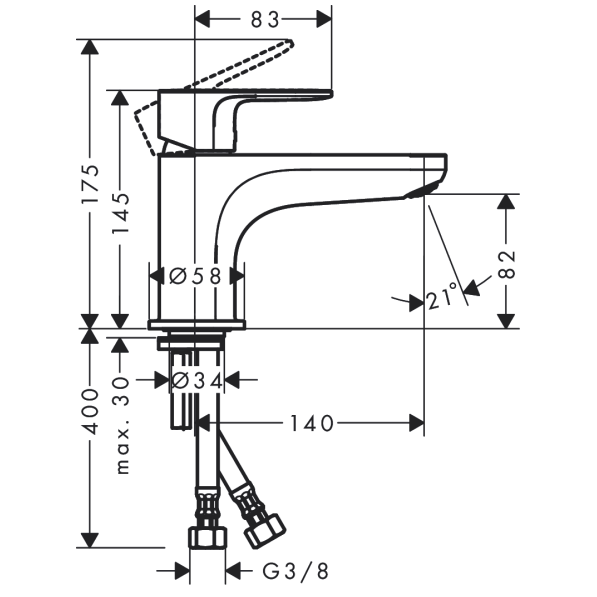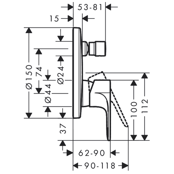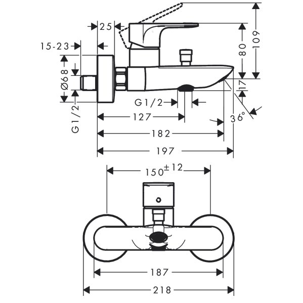 flow rate for bath spout at 3 bar: 25,6 l/min
