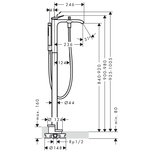 flow rate for bath spout at 3 bar: 19,4 l/min