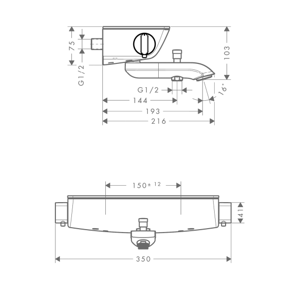 centre distance: 150 ± 12 mm