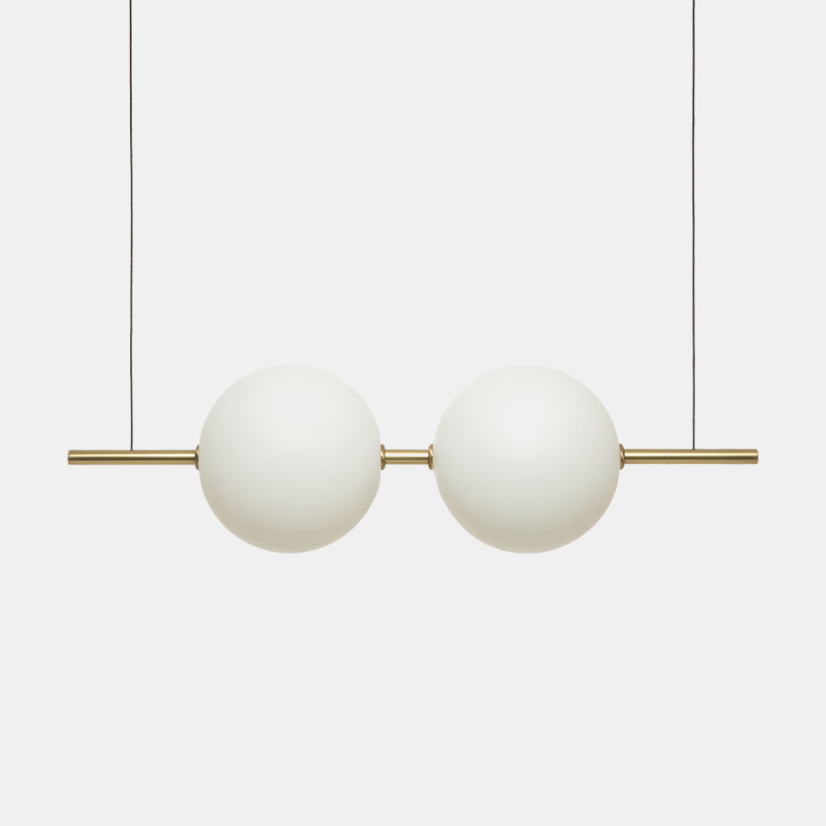 Suggestiva fusione di vetro e ottone, ALMA si inserisce con discrezione in ambienti contemporanei lasciando un segno di luce intenso dato dalla fonte luminosa a led dimmerabile. La geometria bilanciata conferisce un senso di stabilità alleggerito dalle sfere luminose sospese. Il risultato finale è un oggetto iconico con un’aura immateriale. ALMA è disponibile con finitura ottone spazzolato (cod. ON) e nero (cod. NN) in 5 modelli a sospensione.