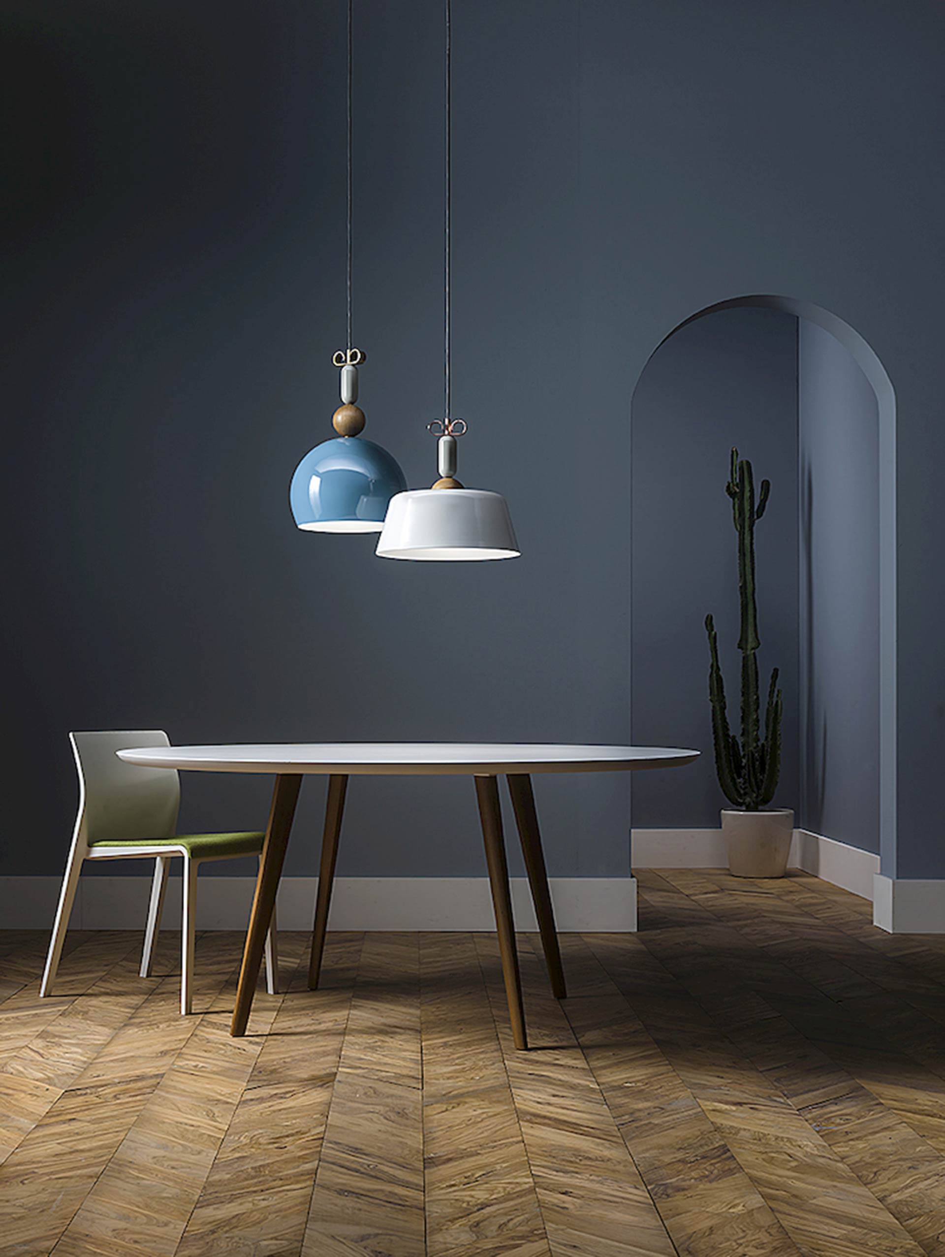 All’interno di questo scenario progettuale forme semplici e materiali diversi vengono sovrapposti a disegnare lampade intese come pezzi di gioielleria. Il sinuoso dettaglio in lego di rovere, i differenti volumi del diffusore, sapientemente declinato in numerose tinte pastello, ed il ricciolo di chiusura in ottone naturale, hanno reso Bon Ton un oggetto iconico.