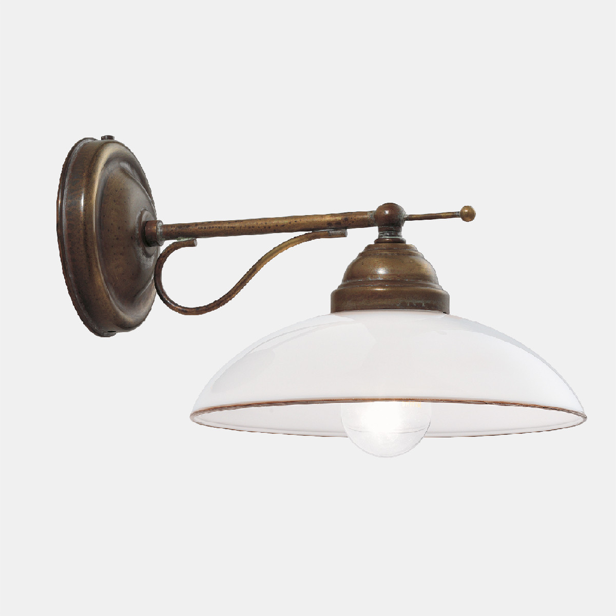 Linguaggio country internazionale e tradizione millenaria del vetro di Murano, grande espressione del made in Italy, si fondono alla perfezione nella collezione Country. Prodotte in ottone e vetro soffiato bianco, queste lampade sono peculiarmente caratterizzate dal bordo ribruciato marrone.