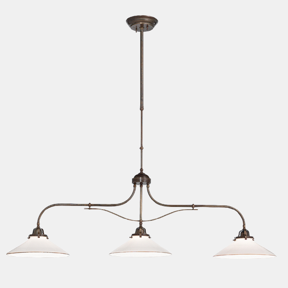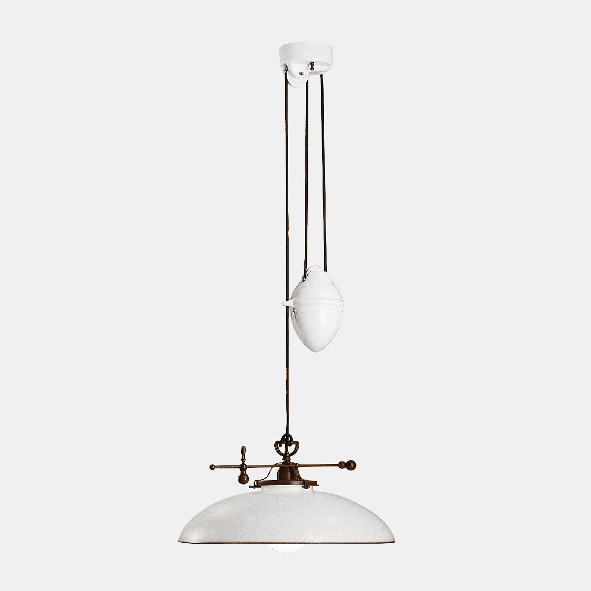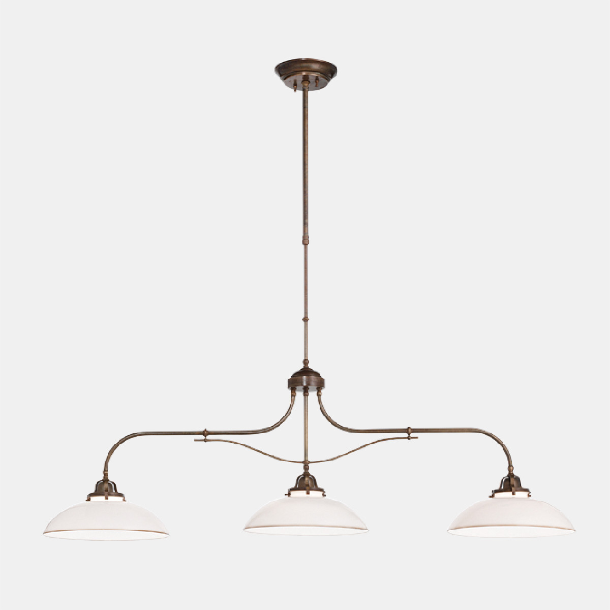 Linguaggio country internazionale e tradizione millenaria del vetro di Murano, grande espressione del made in Italy, si fondono alla perfezione nella collezione Country. Prodotte in ottone e vetro soffiato bianco, queste lampade sono peculiarmente caratterizzate dal bordo ribruciato marrone.