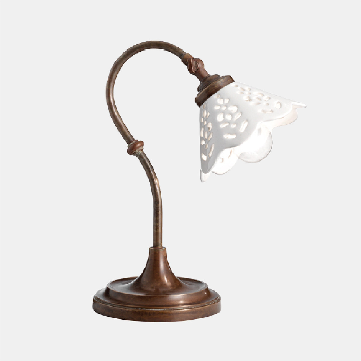 I ricami sapientemente traforati sulle preziose ceramiche di Bassano conferiscono un grande valore estetico alle lampade della collezione Fiori di Pizzo, emblemi di un classicismo rivisitato in chiave moderna. La ricercata lavorazione consente, in fase di illuminazione, la creazione di giochi di luce sulle pareti proiettando fiori e decori.