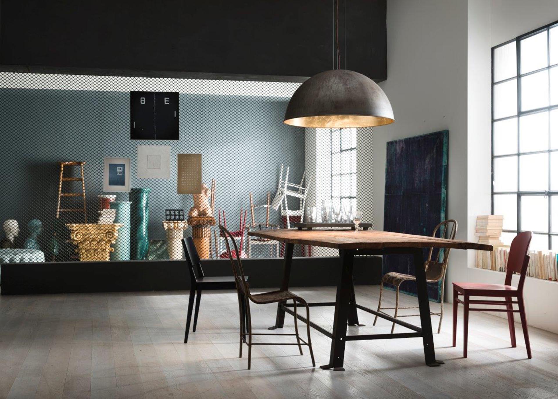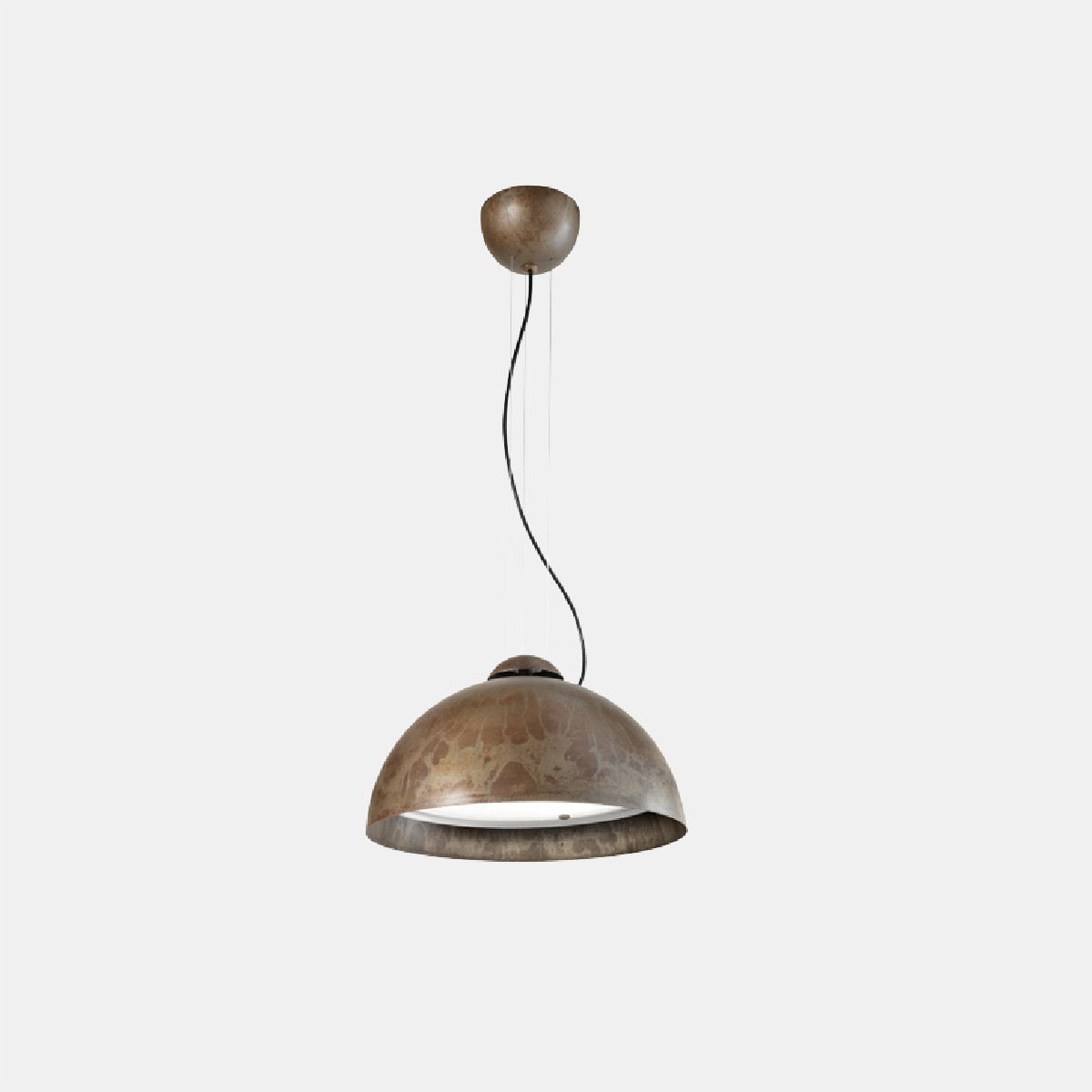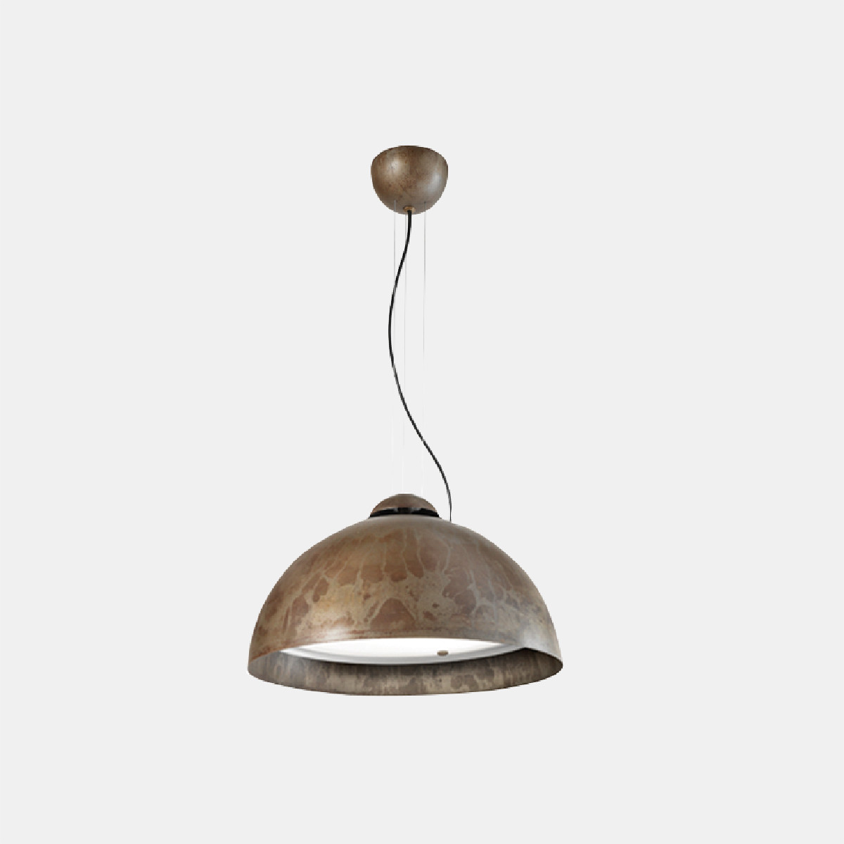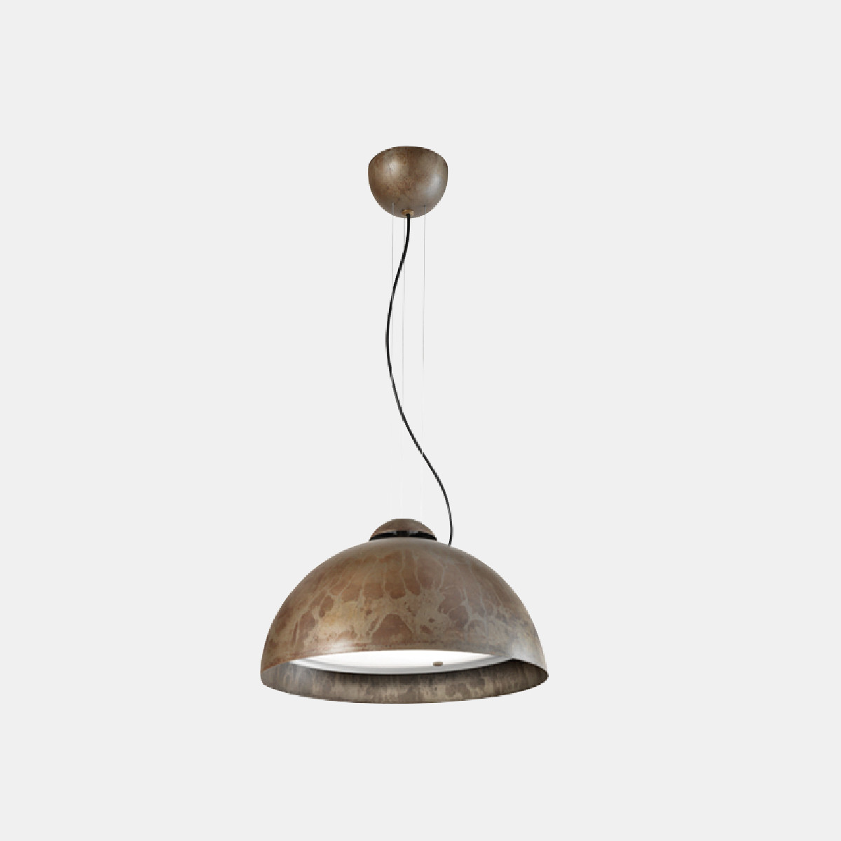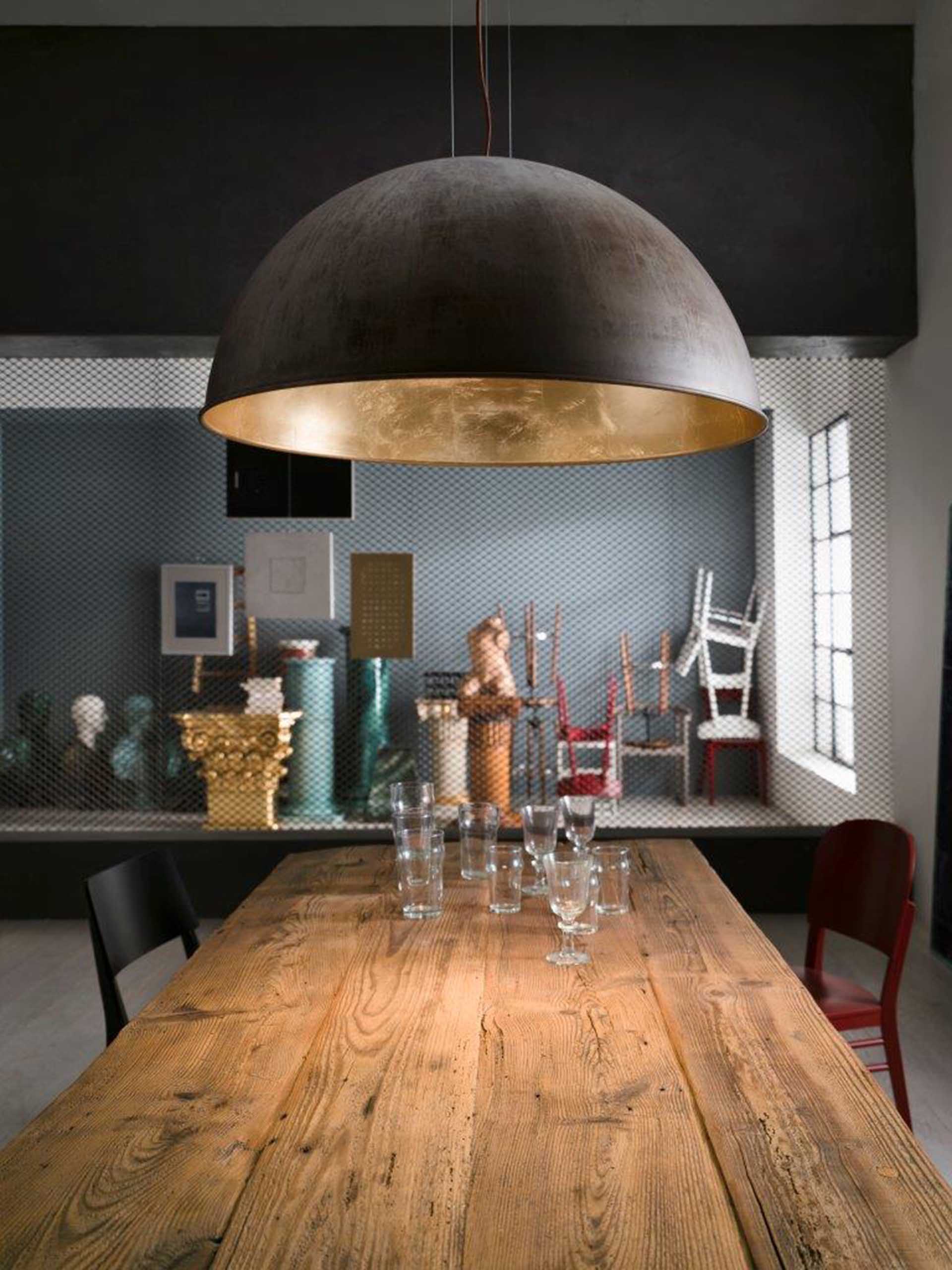 Il tratto grafico deciso e la perfetta mezza sfera caratterizzano questa collezione di lampade, che si configura come un omaggio alla rivoluzione astronomica. Il contrasto tra l’esterno in ottone o ferro e l’interno realizzato in foglia oro, foglia argento o rame, conferisce ad ogni modello un valore estetico di grande effetto visivo. Disponibili anche a LED.