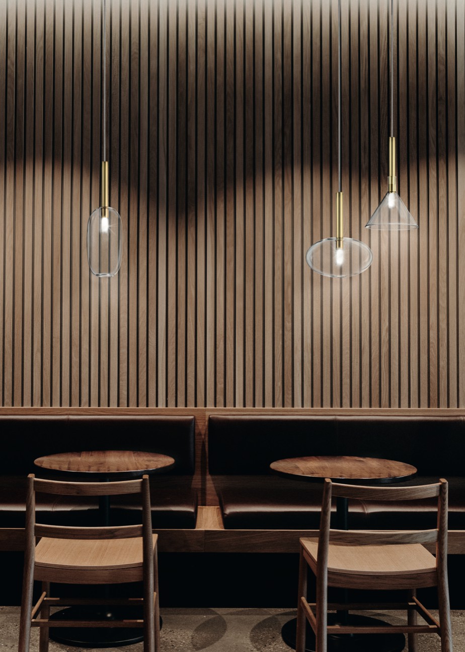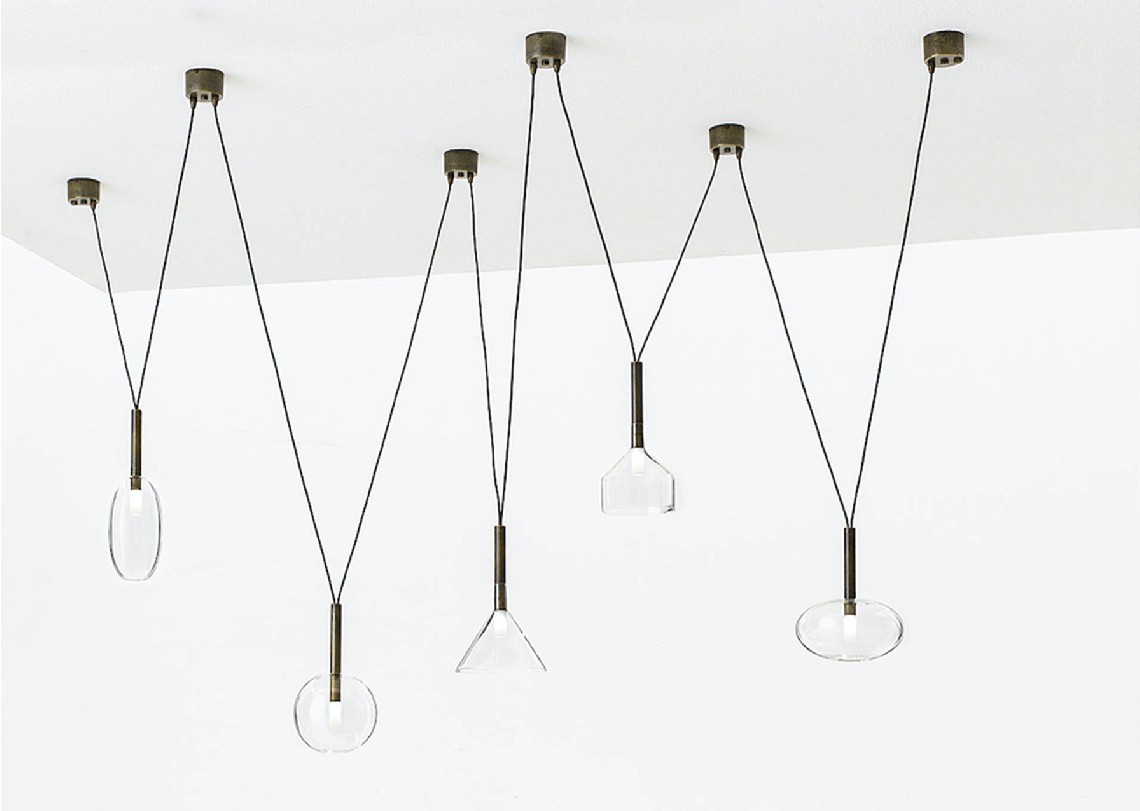 Un gioco di proporzioni ed accostamenti, di dimensioni, di materiali e di forme che danno vita a lampade in ottone naturale (ONT) o anticato (OOT) e vetro trasparente, delicate e raffinate. Una famiglia di lampade da comporre per rendere unico un ambiente, generando uno spazio nello spazio: il risultato finale è appunto una questione di alchimia.
