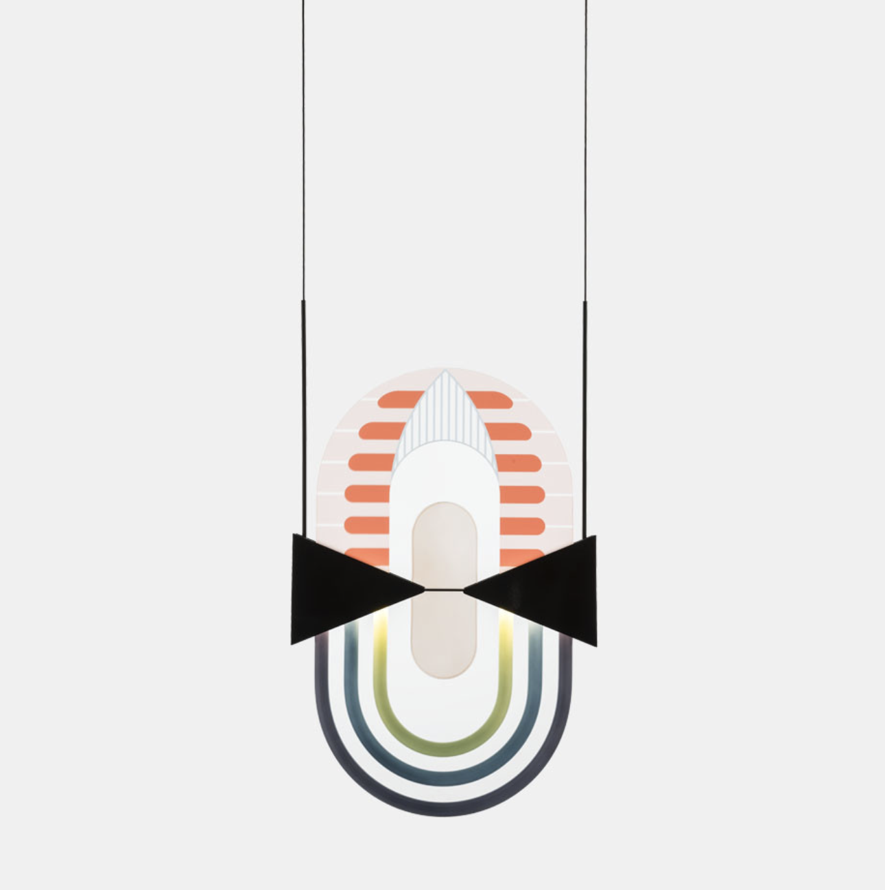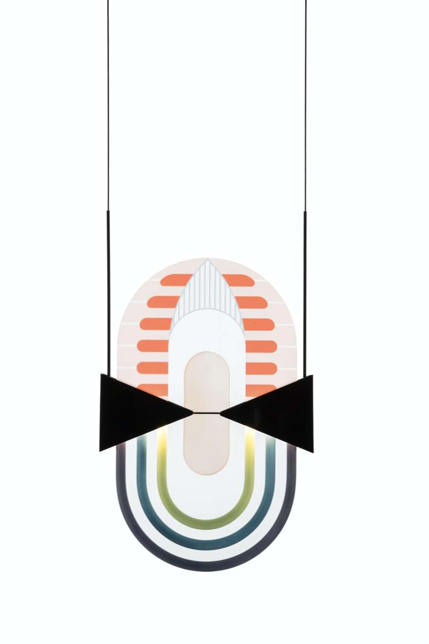 è una lampada a sospensione, sintetica nella sua essenza ma complessa nella sua struttura. La composizione genera inconsapevolmente quell’alito di opulenza caratteristico dell’art déco americana, richiamata anche dal nome della città che incarna quel movimento stilistico. MIAMI è il perfetto connubio tra elementi metallici e vetro decorato, che intrecciandosi fungono da anima e corpo delle lampade stesse, generando un perfetto equilibrio tra estetica e funzione.