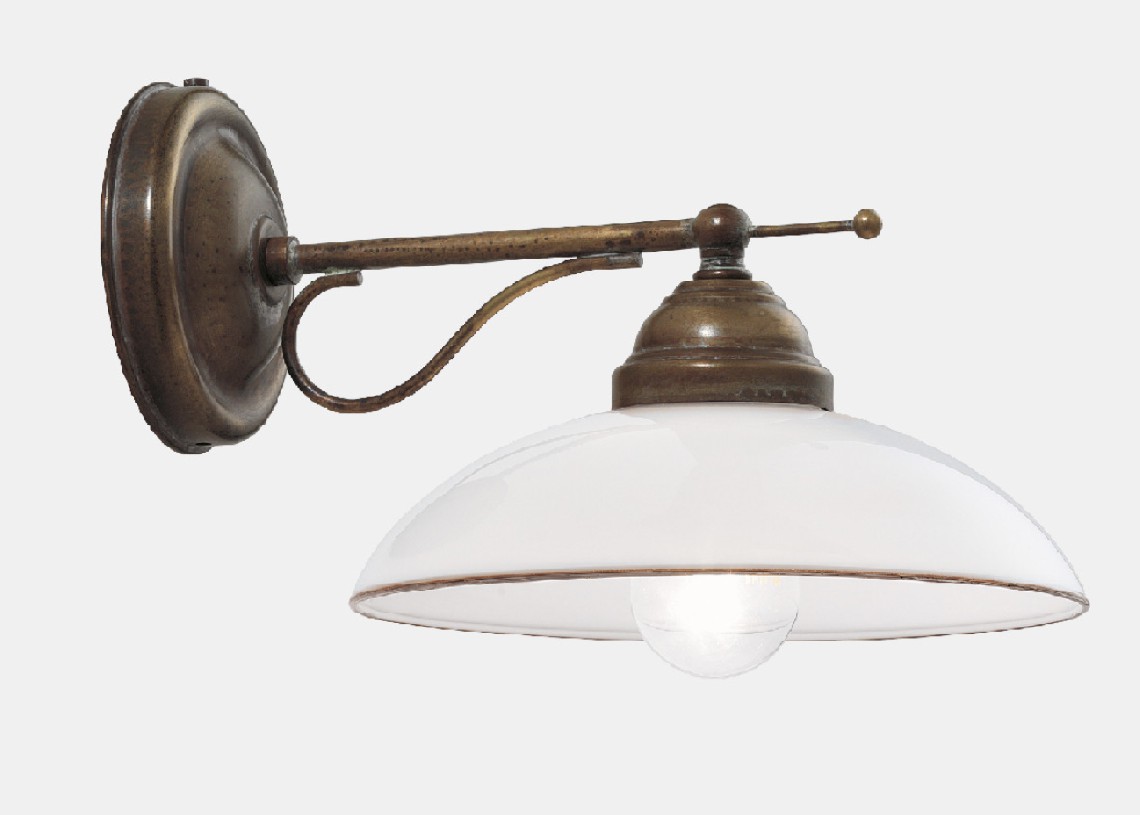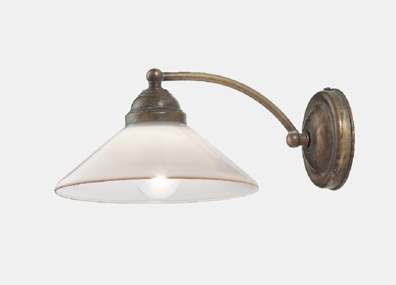 Linguaggio country internazionale e tradizione millenaria del vetro di Murano, grande espressione del made in Italy, si fondono alla perfezione nella collezione Country. Prodotte in ottone e vetro soffiato bianco, queste lampade sono peculiarmente caratterizzate dal bordo ribruciato marrone.
