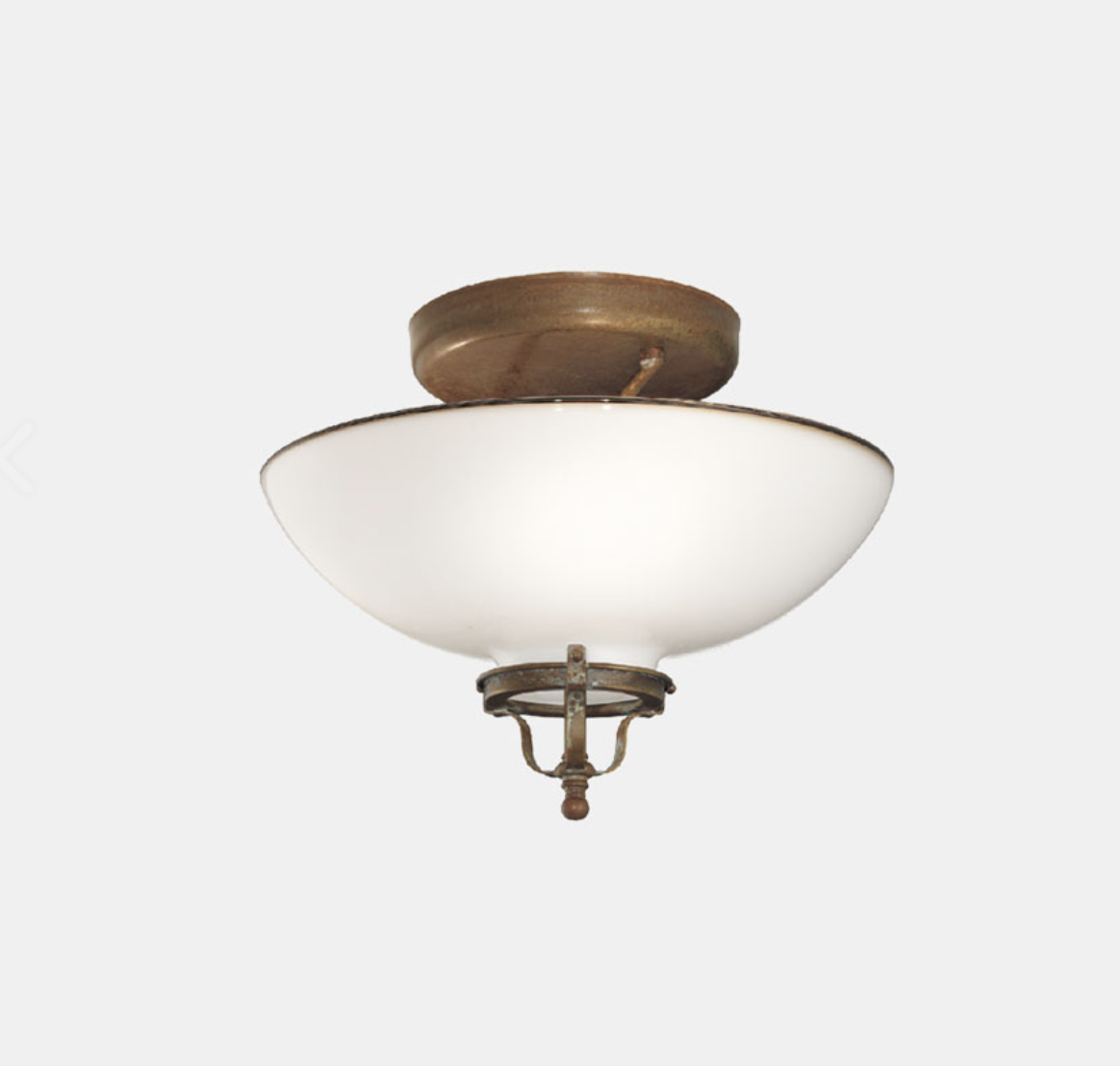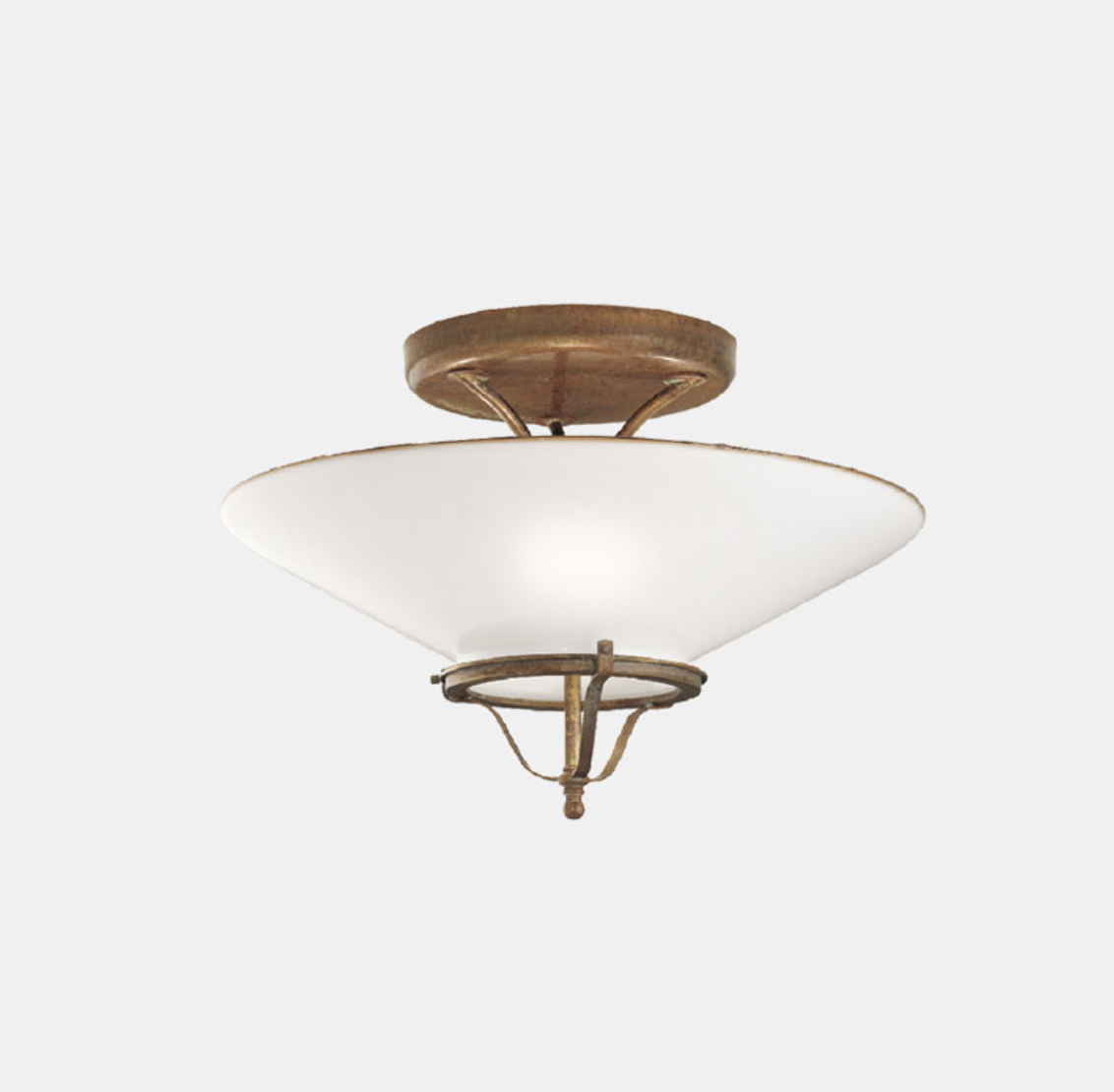 Linguaggio country internazionale e tradizione millenaria del vetro di Murano, grande espressione del made in Italy, si fondono alla perfezione nella collezione Country. Prodotte in ottone e vetro soffiato bianco, queste lampade sono peculiarmente caratterizzate dal bordo ribruciato marrone.