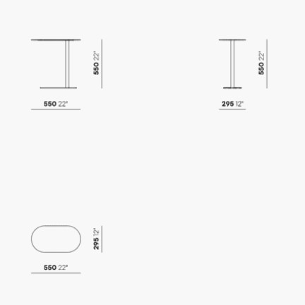 Corvetto is a minimal and functional object, slim but strong with an overhanging top that can be moved to offer occasional support to various activities and in different contexts. On its own or in small groups, it quickly organises the accessory and service space. The side table has its compositional harmony thanks to the similar shapes for both rounded faces: the compact base and the wide top.