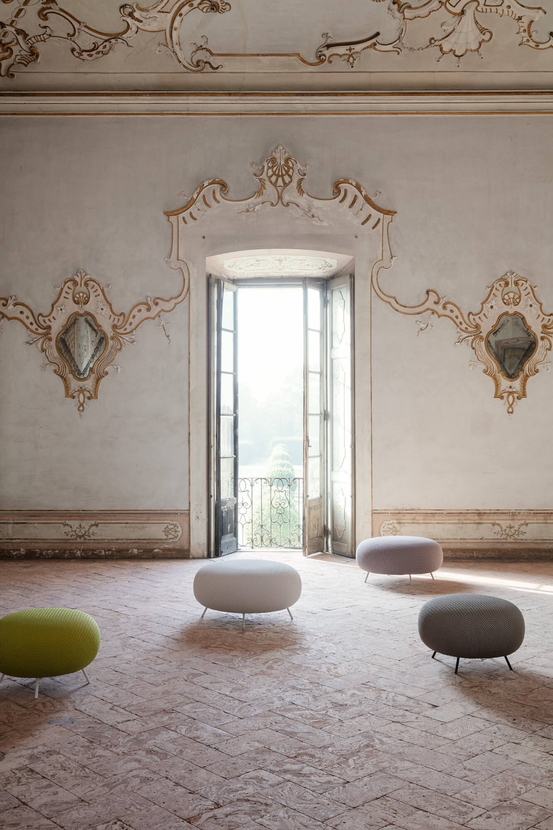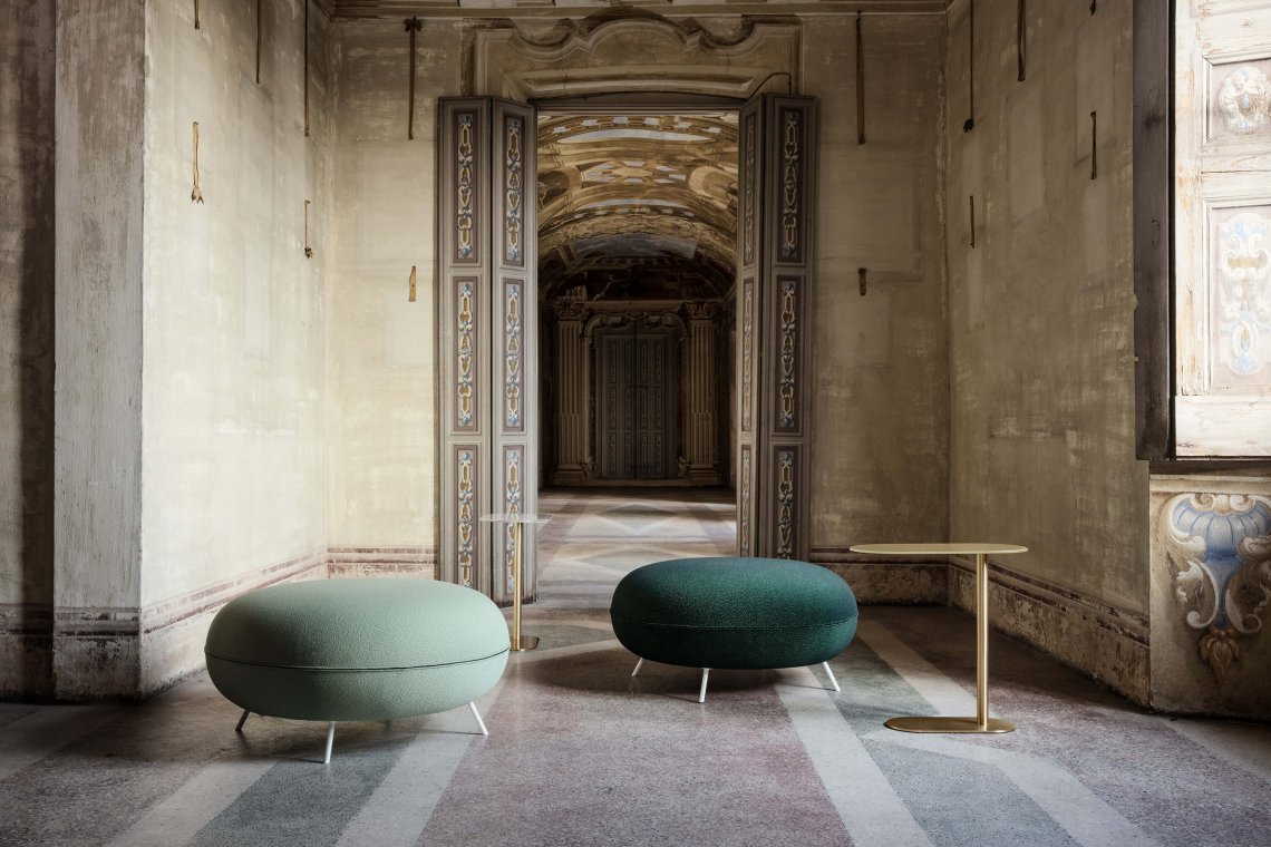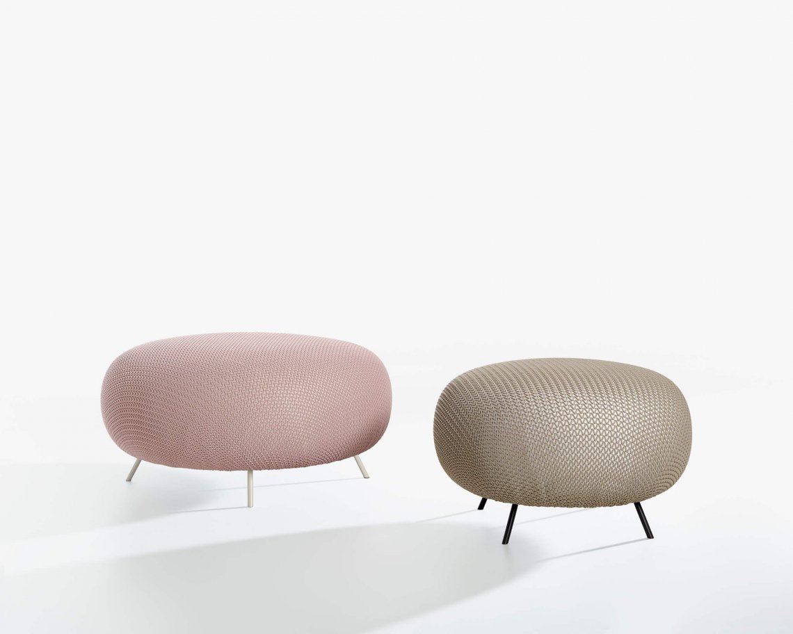 Gioia is a soft and generous ottoman, excellent for integrating the temporary presence of other guests in areas of conversation or rest, or to provide a supporting point. The structure is composed of tubular metal feet while the soft padding is covered with fire resistant and elastic handwoven mesh. A version with a zipped, removable cover is also available.