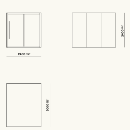 It's available in a wide variety of materials and finishes and can be combined depending on specific needs. The aluminium frames can either be painted or anodised, whilst the walls are available in wood, glass, fabric, melamine or lacquered.