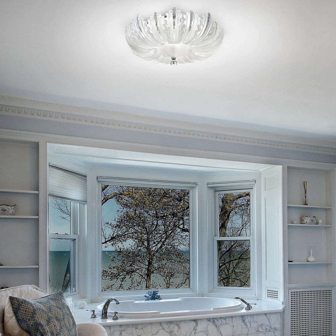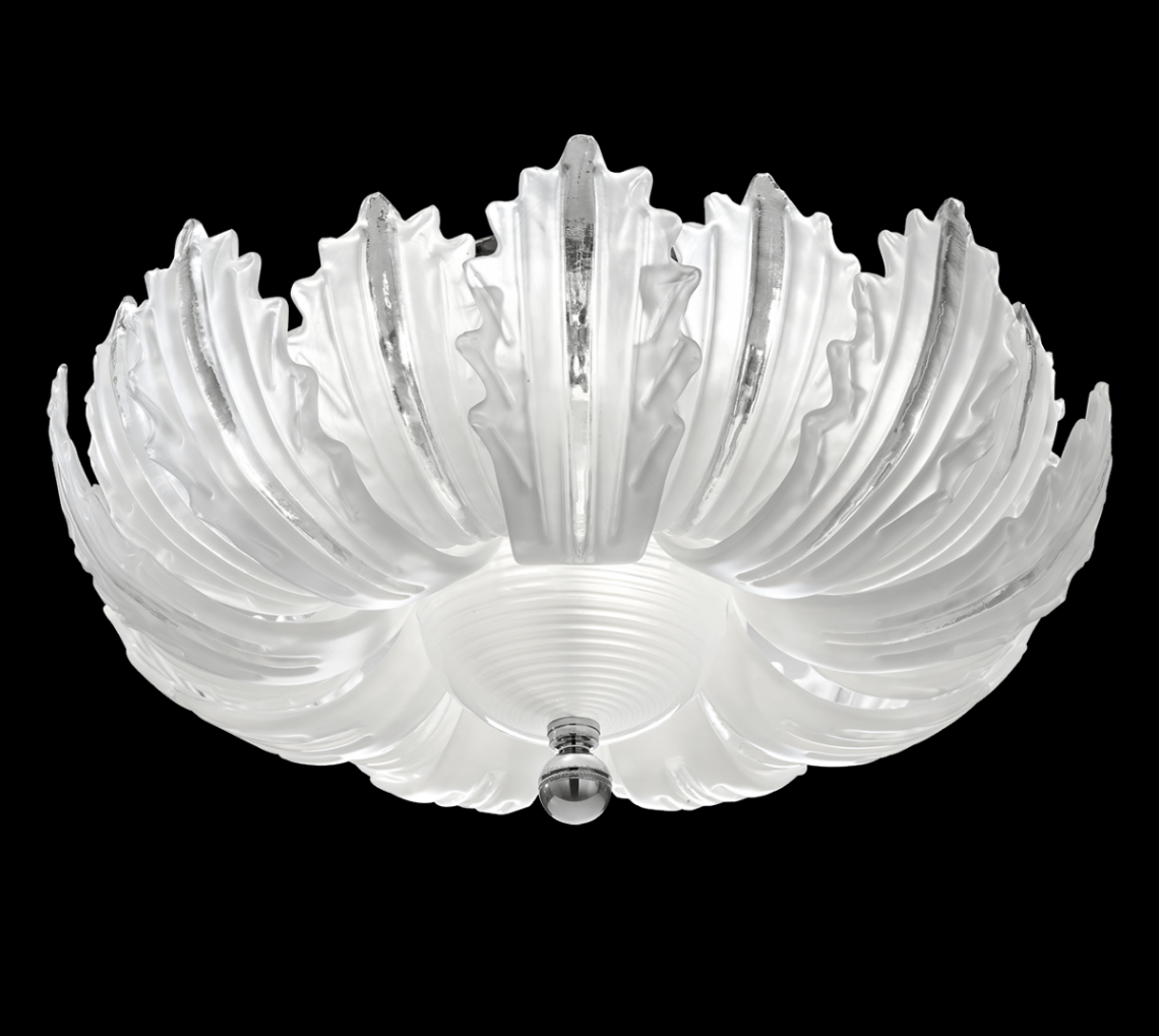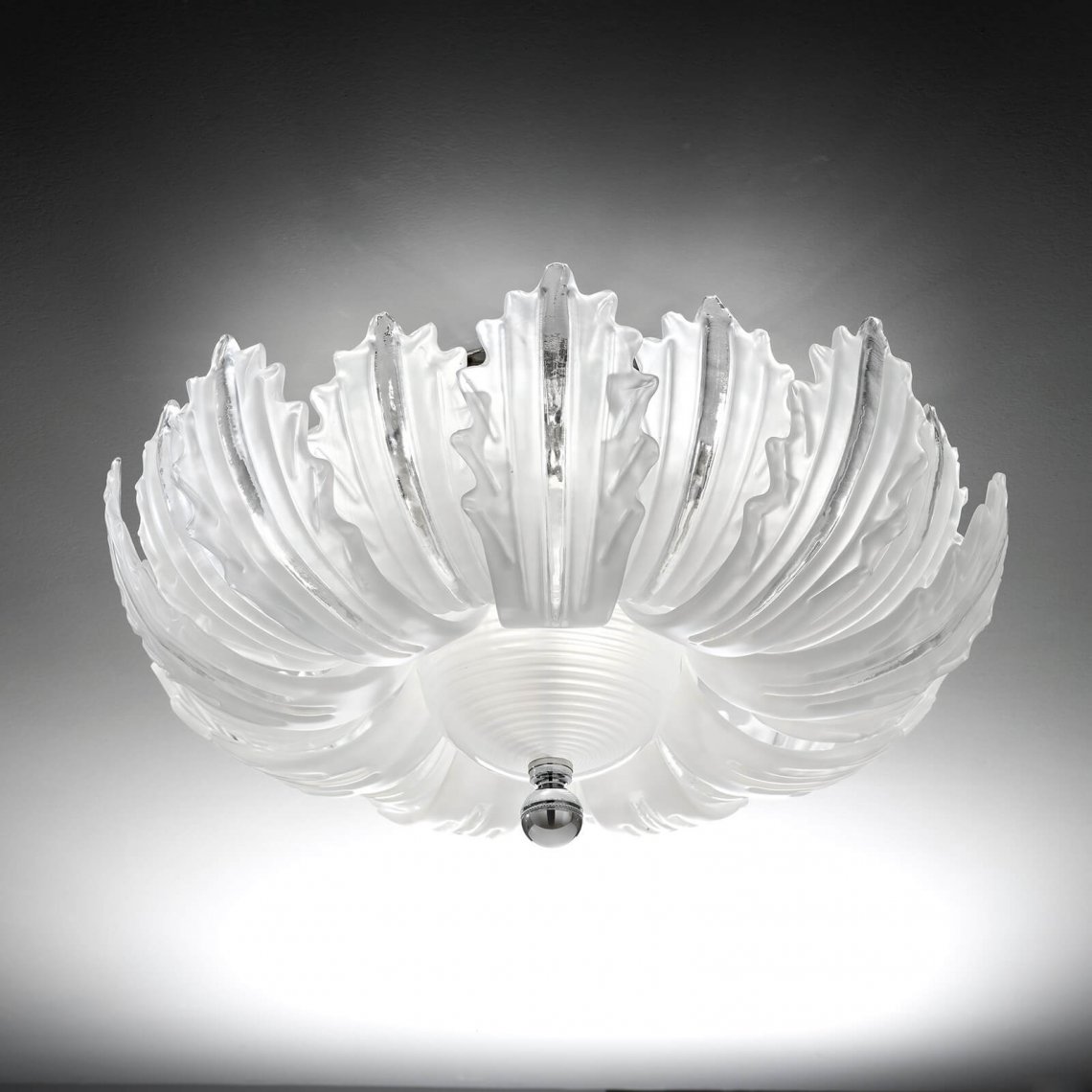 Ceiling lamp with satin glass leaves and metal with nickel finish. Available in different dimensions and colours. Opera Classic Collection.