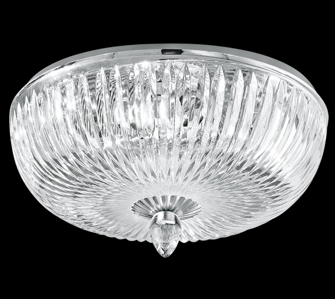 Ceiling lamp with chrome metal and carved crystal diffuser. Opera Classic Collection.