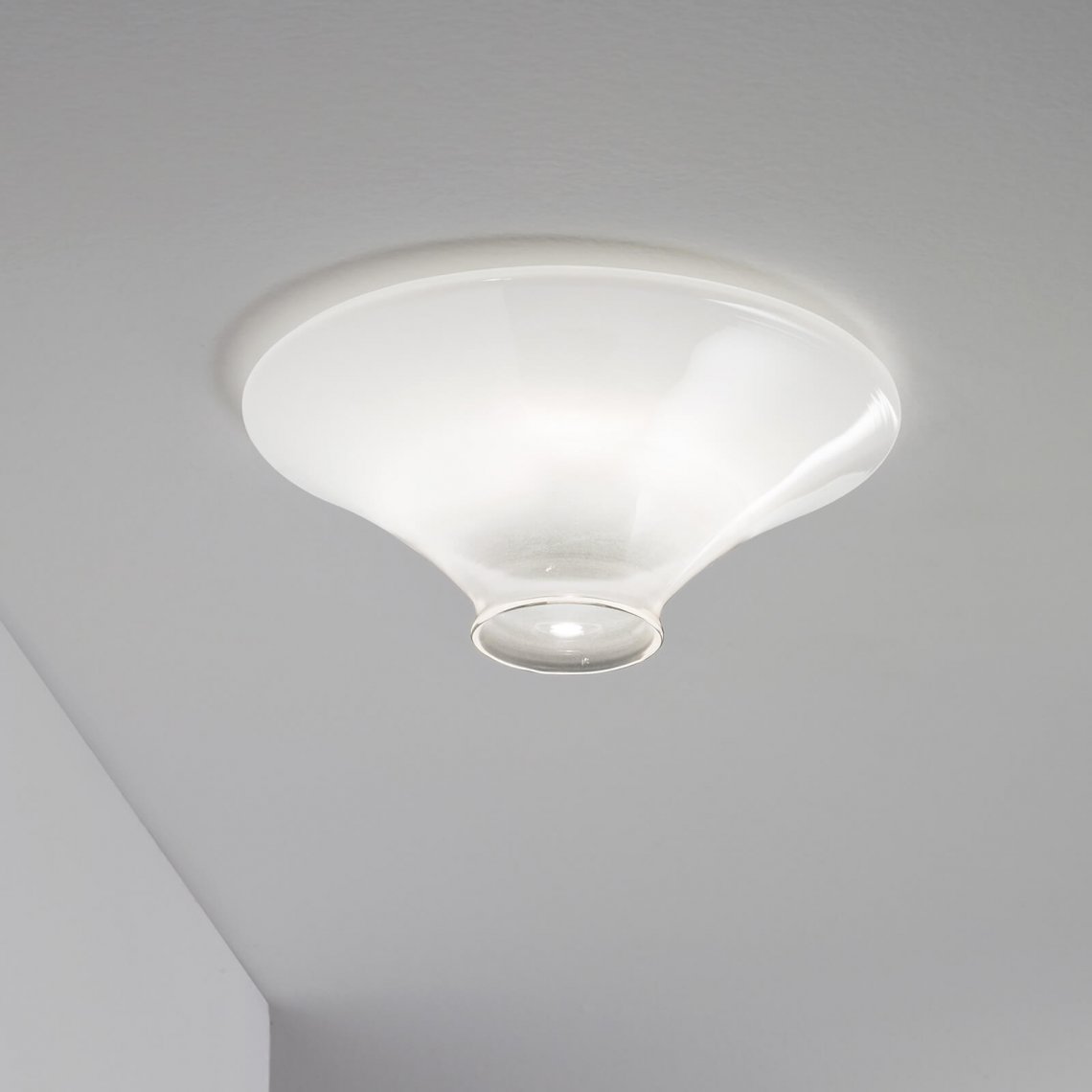 Spotlight with blown glass in gold, titanium or white shaded finish.