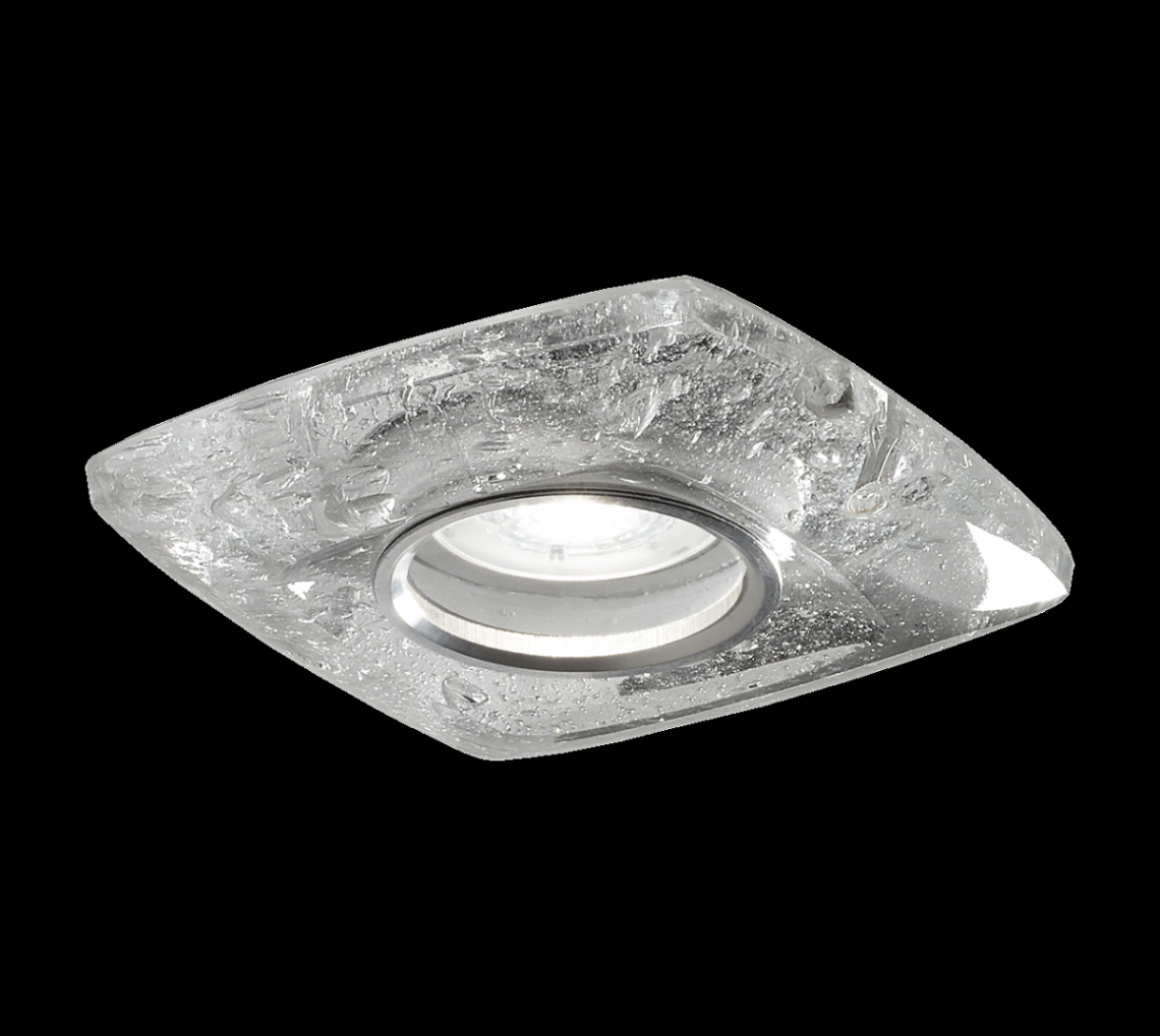 Spotlight in clear glass with krek effect. Internal metal ring in chrome finish.
