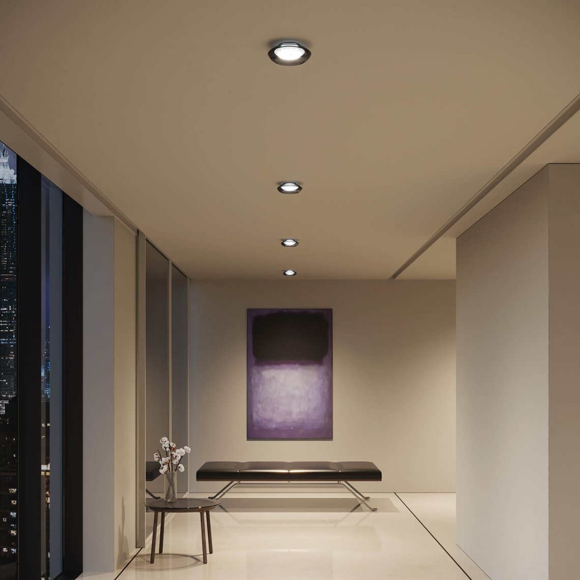 Spotlight with external transparent black blown glass and white internal diffuser.