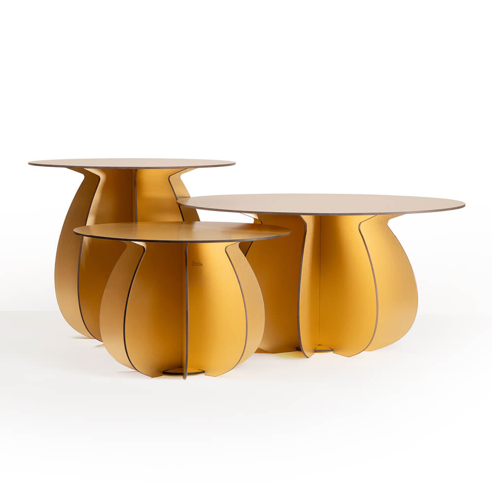 Ibride has teamed up with designer Florence Bourel to create Parodia Magnifica, a trio of round coffee tables. For the start of 2024, they arrive in a Gold version designed for indoor use. Their design is inspired by the world of cacti, and more specifically the round Parodia Magnifica cactus. Influenced by the beauty of gardens and outdoor spaces, the designer has put plants back at the heart of her creations, and has added them to Ibride's furniture collections.