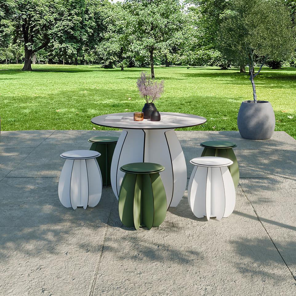 The Gardenia outdoor table is a creation designed to enhance the outdoor dining experience. Designed to seat 4, this round table combines aesthetics, durability and adaptability to your outdoor design projects.