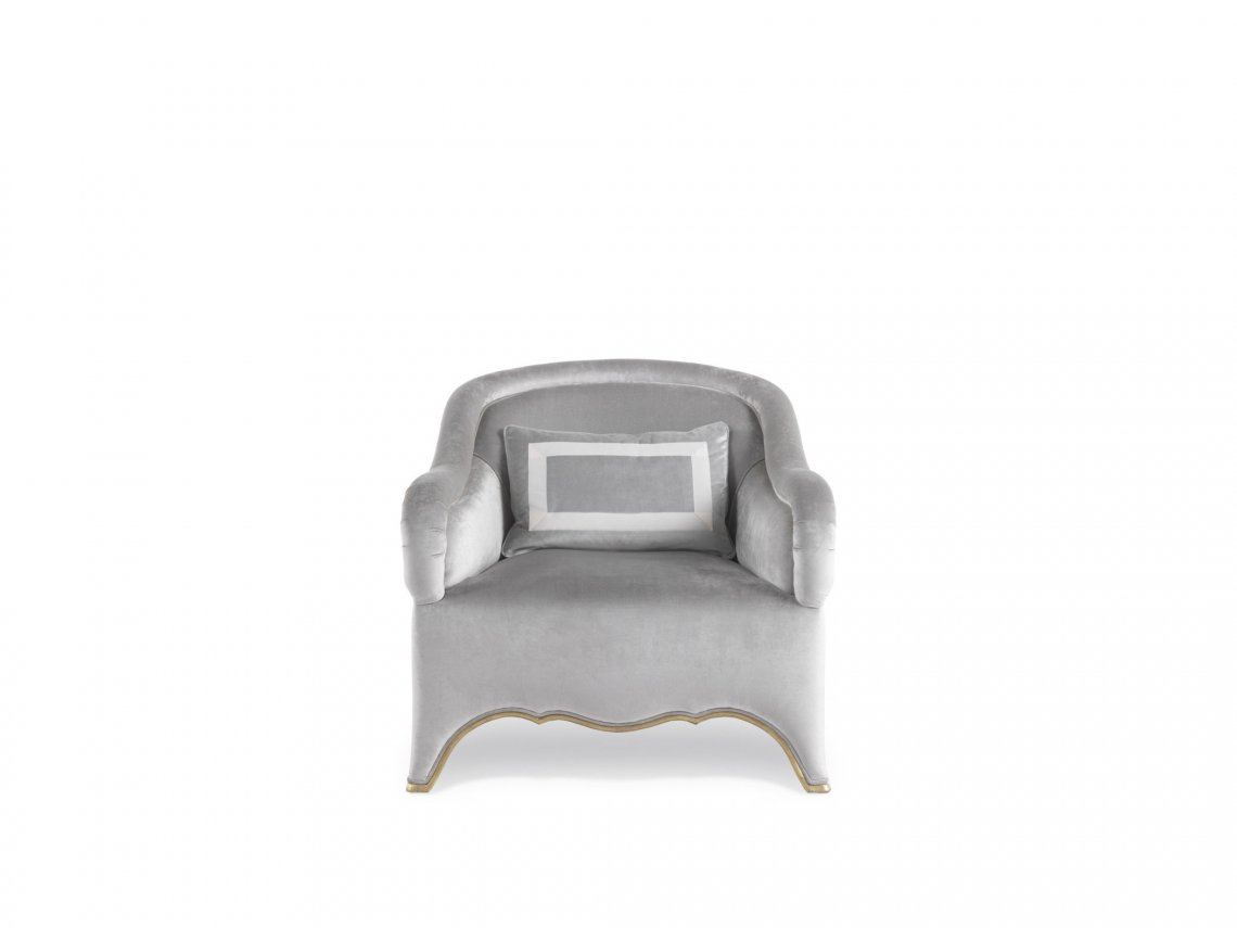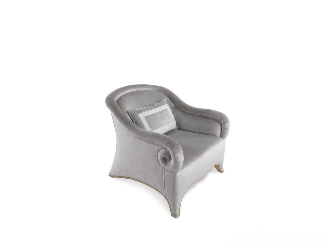 ARMCHAIR WITH STRUCTURE IN BEECHWOOD WITH ANTIQUE GOLD FINISHING. PADDING IN FOAM. UPHOLSTERY IN FABRIC.
