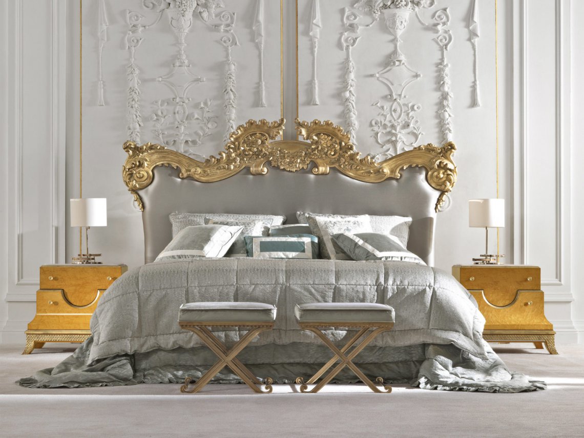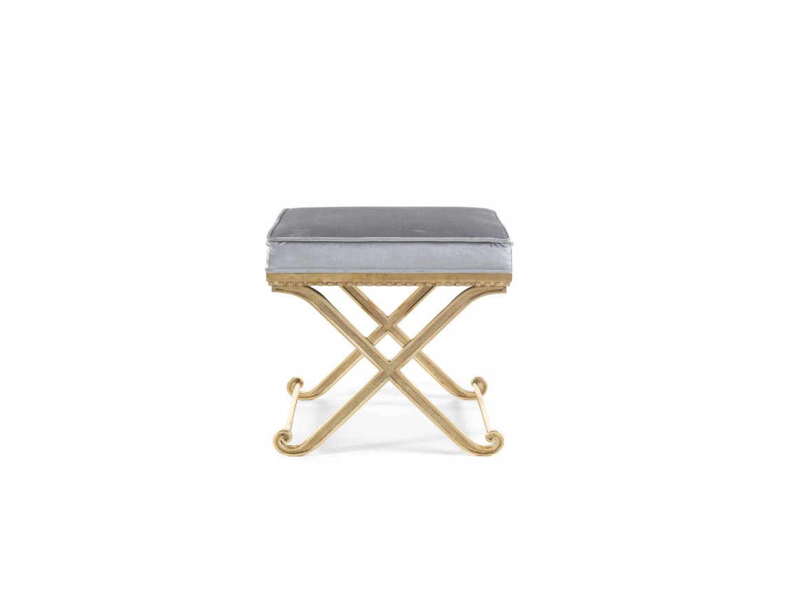 Stool with structure in brass with gold finishing. Seat with panel in wood and padding in foam. Upholstery in fabric.