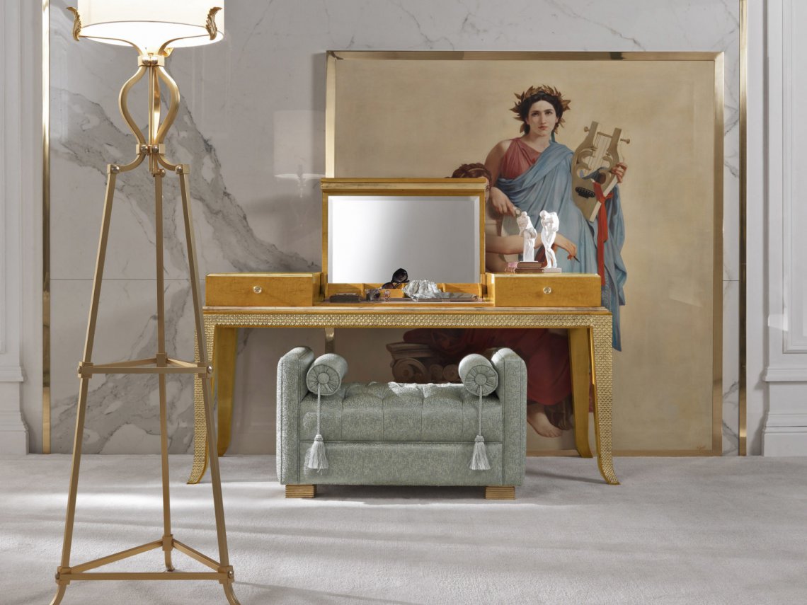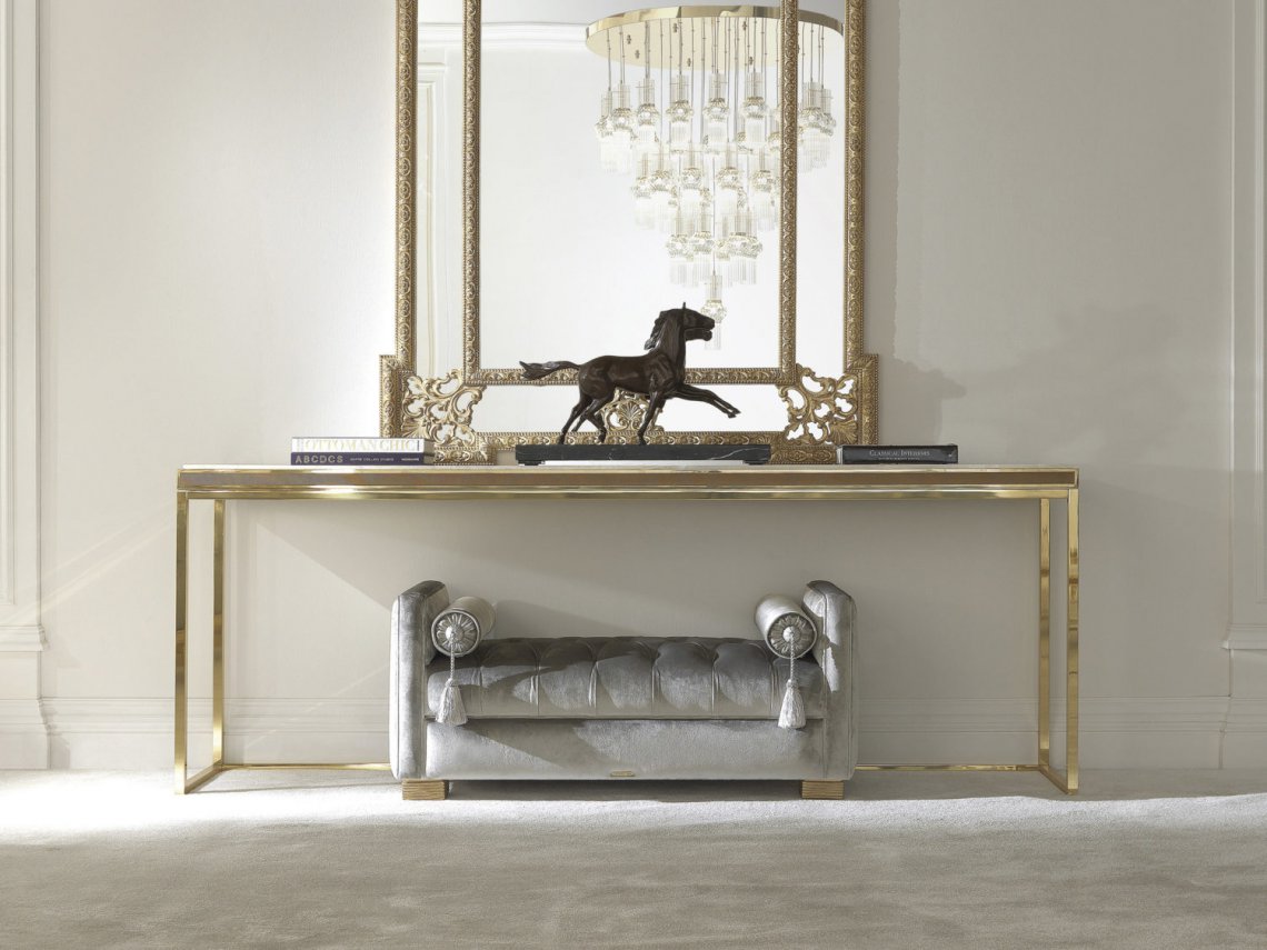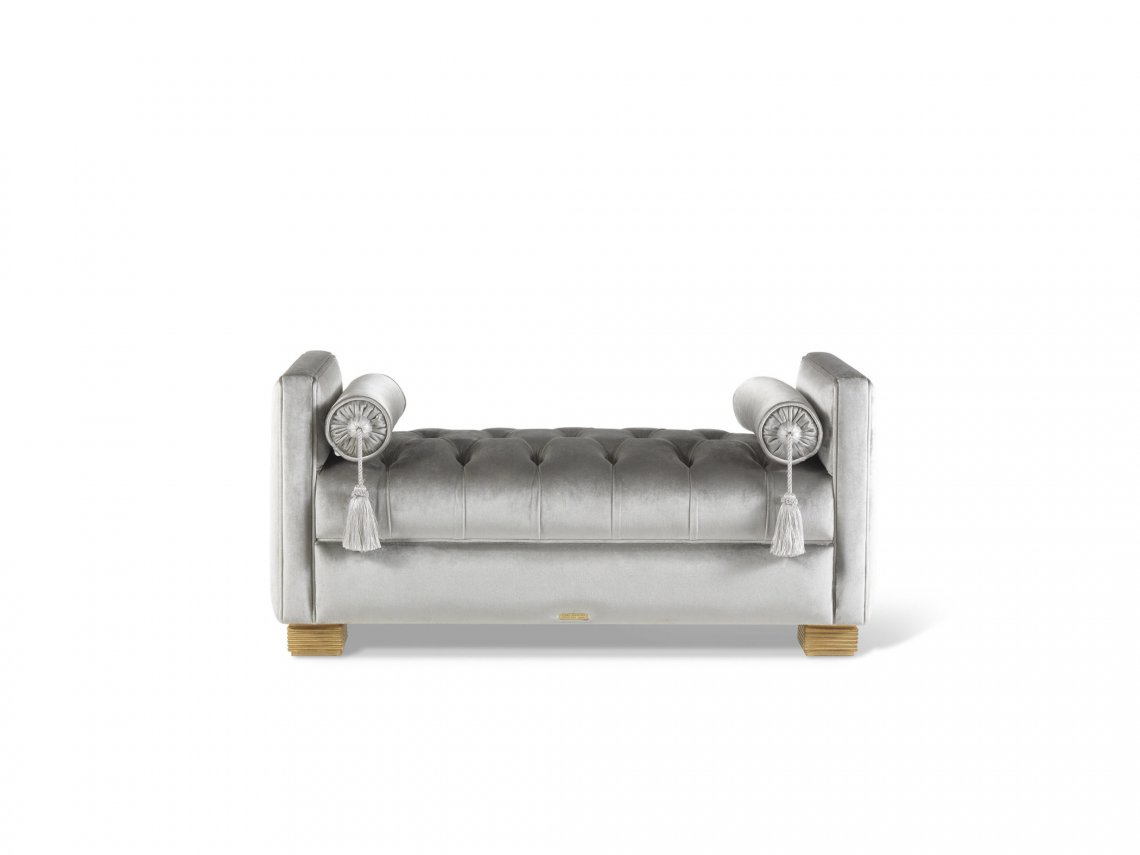 BENCH WITH STRUCTURE IN BEECHWOOD. PADDING IN FOAM. UPHOLSTERY IN FABRIC