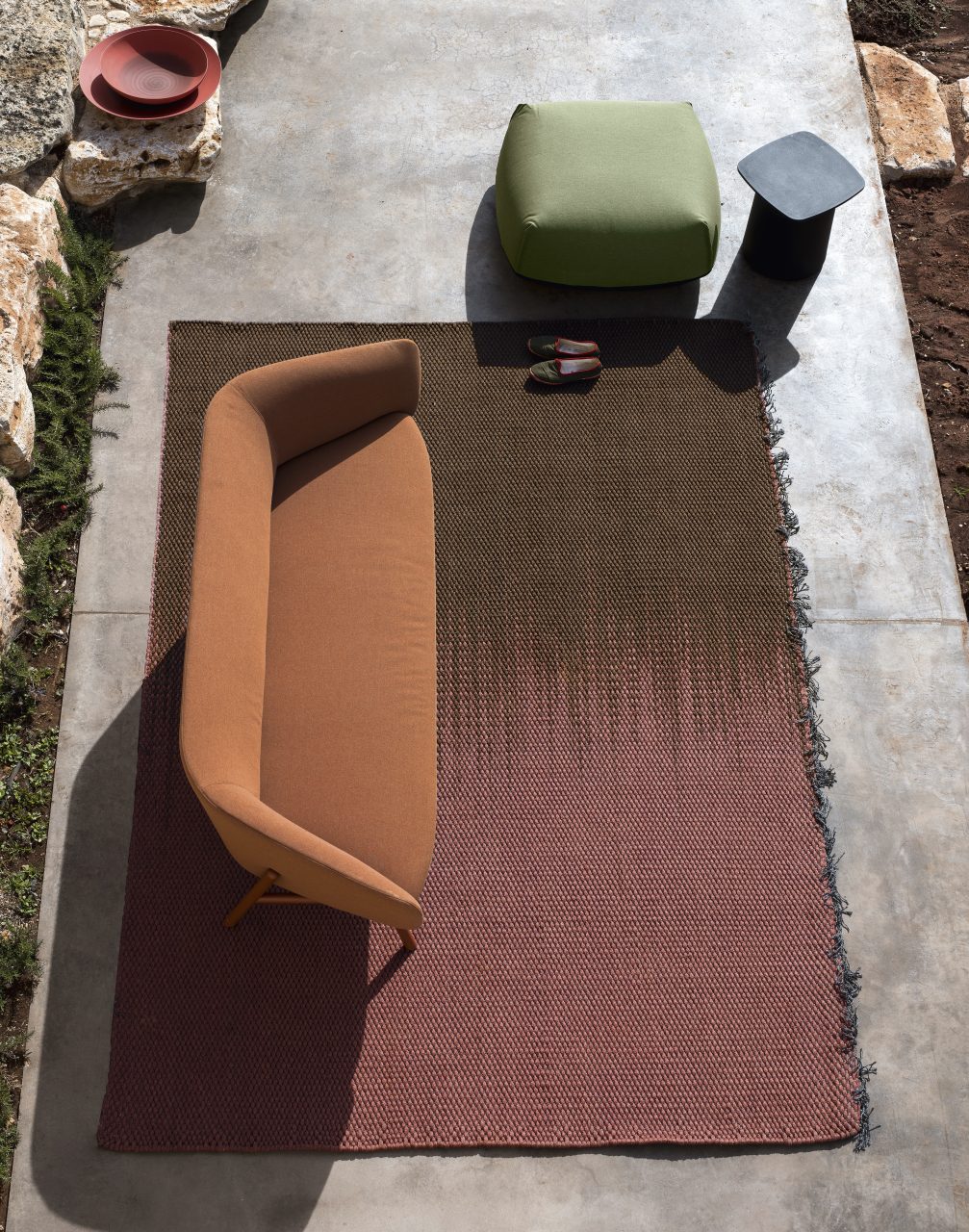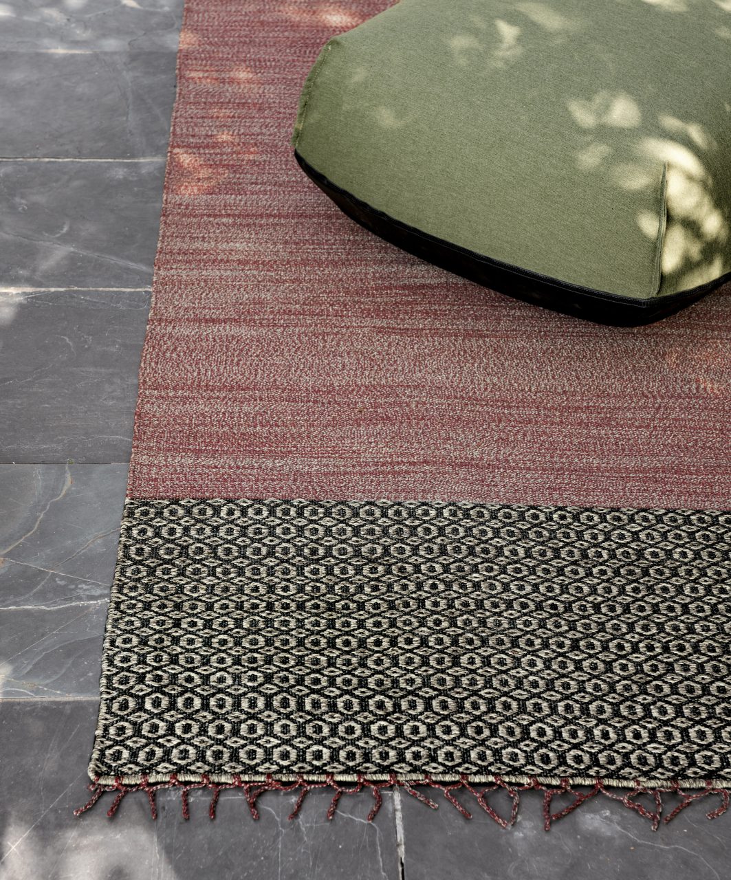 Created to meet the needs of outdoor spaces, it has evolved into a range of versatile furnishing accessories ideal for any space. Featuring a melange weave with edge trims in different colours and fringes, the carpets are weaved on handlooms: such ?ne craftsmanship and tailored quality makes each one of them unique. Made from a polypropylene ?bre yarn, Mustache carpets are available in three designs in two or more colours and in two standard sizes, or can be customised on request. They are highly resistant, even when exposed to sunlight or humidity.