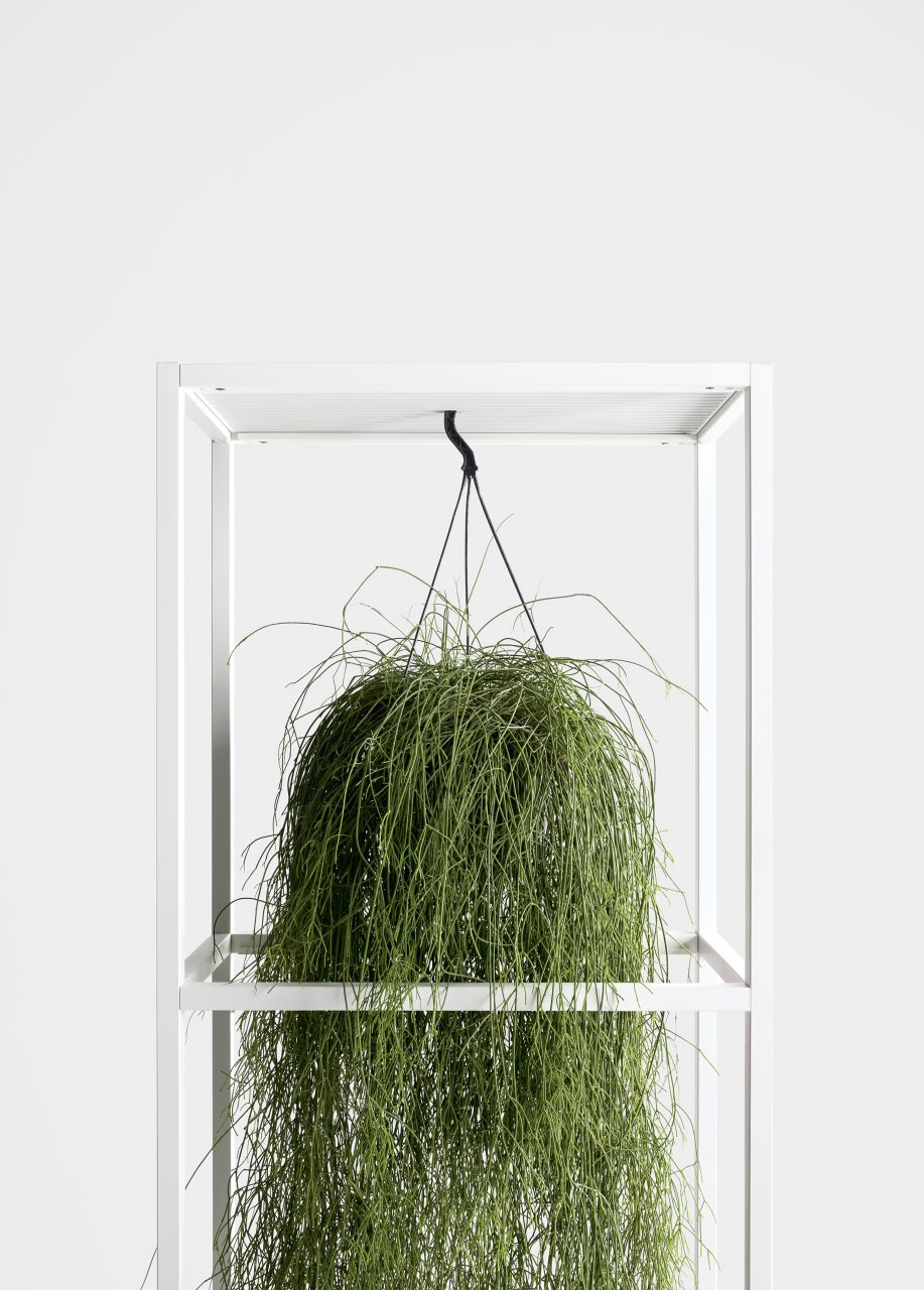 Designed for versatile outdoor use, Regoli shelves have a minimalist design that blends harmoniously into any context. Made of sturdy cataphoresis-treated metal, with a layer that protects against rust and weathering and a subsequent powder coating, it is available in white, black or olive green. Thanks to their modularity, they can be used to create a multitude of solutions, choosing from modules of different widths and depths, always 200 cm high. Even the shelves, either with a grid for the passage of water or solid ones, can be moved as you prefer to meet all needs: for furnishing a patio or terrace, organising a vertical vegetable garden or a collection of plants, storing wood or tools etc.