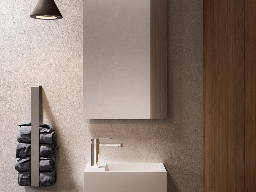 Wall-mounted or countertop washbasin in matt white Solid Surface, with possibility of external Colour finish, glossy or matt.