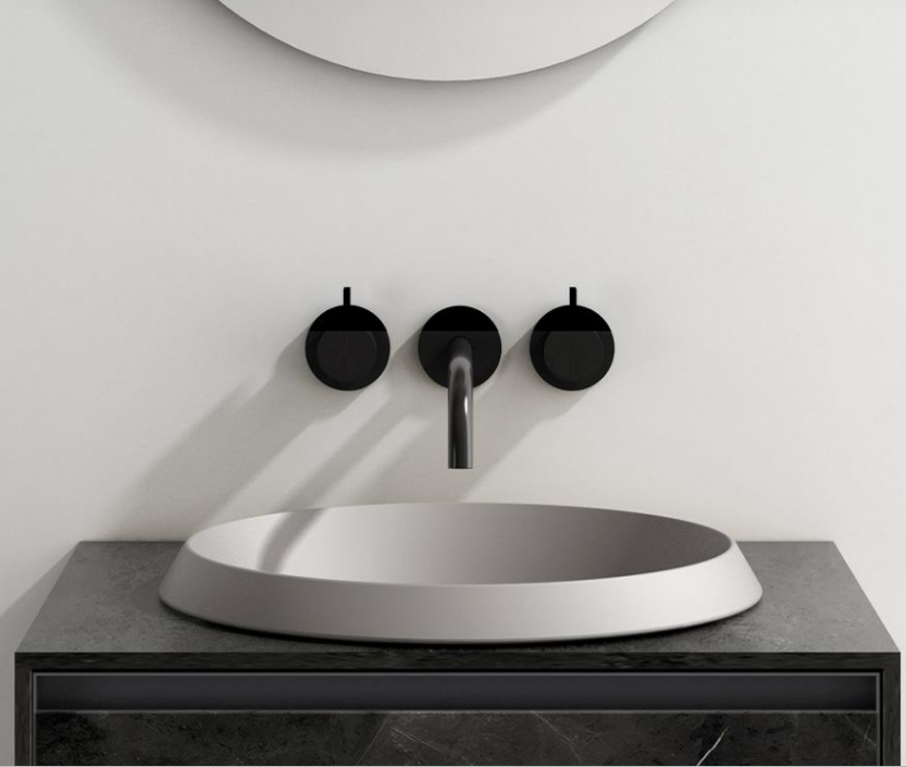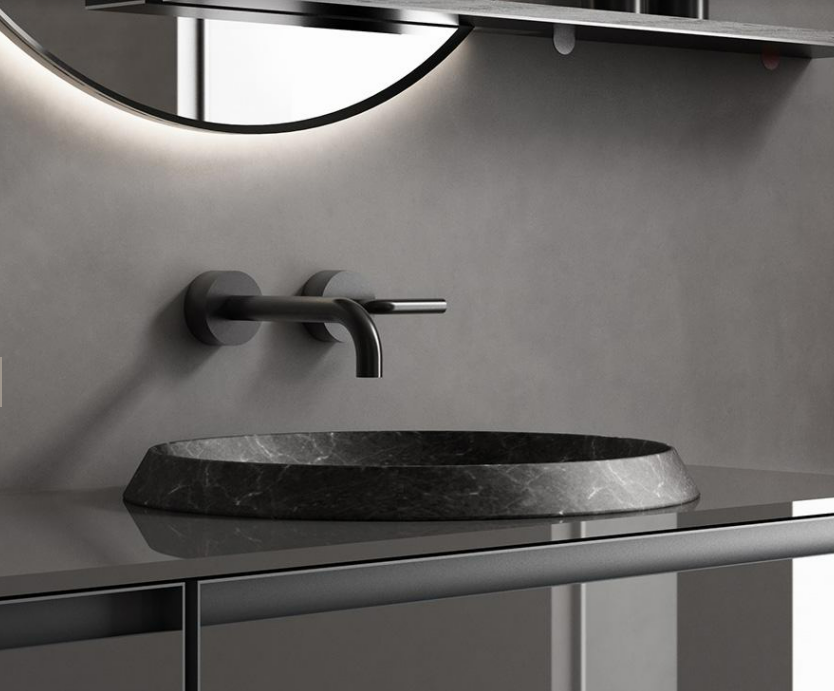 Catino washbasin is available in Natural Stone or Solid Surface finish. Semi-recessed or countertop installation.