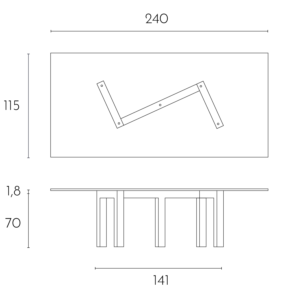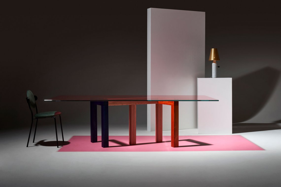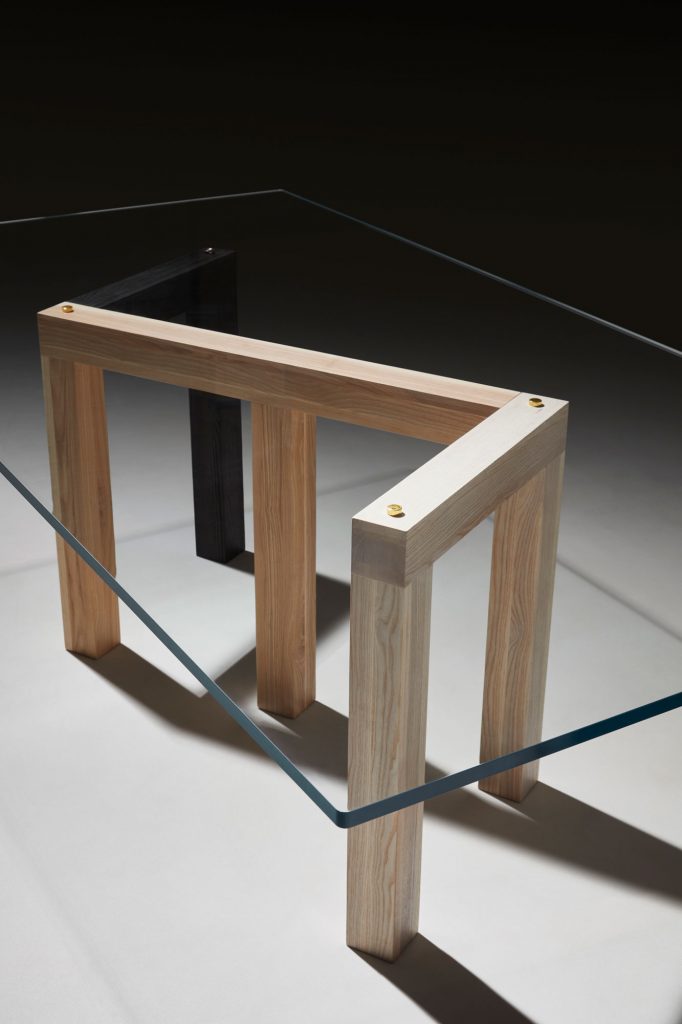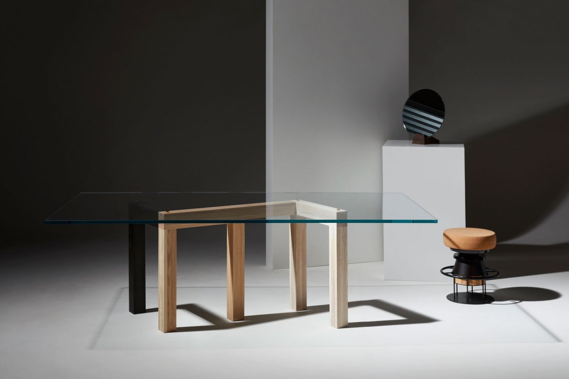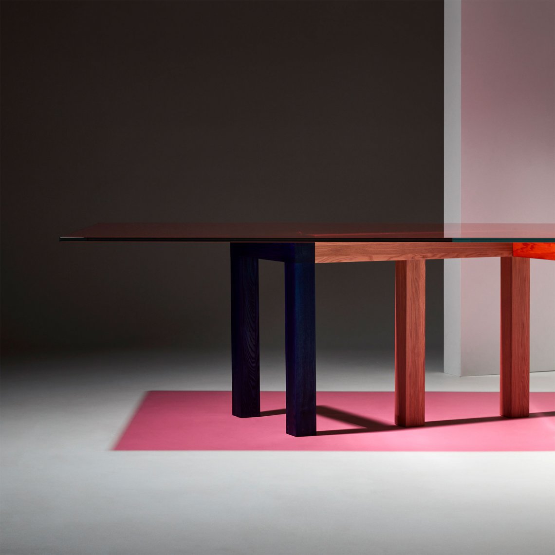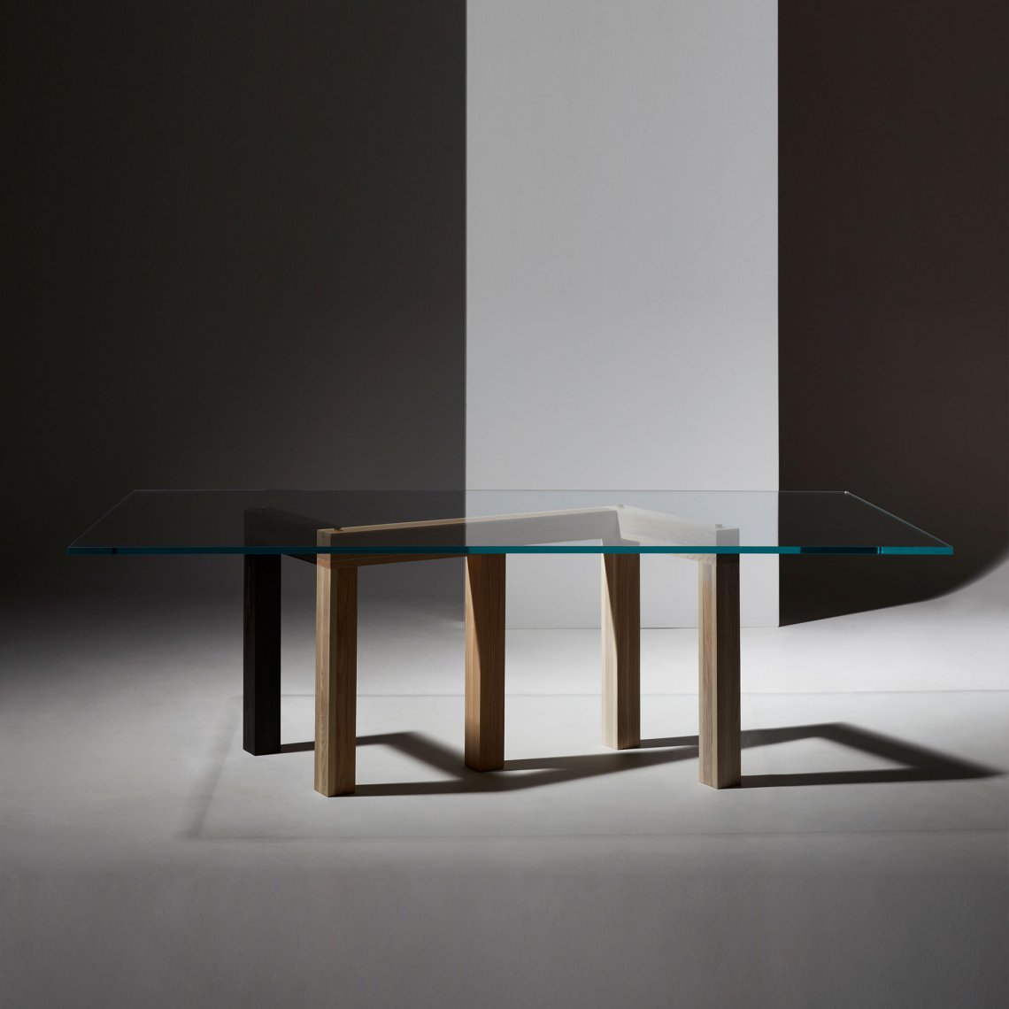 Penrose is a large dinner table in wood and glass. The design was inspired by the geometric research of mathematician Roger Penrose and his famous impossible triangle.