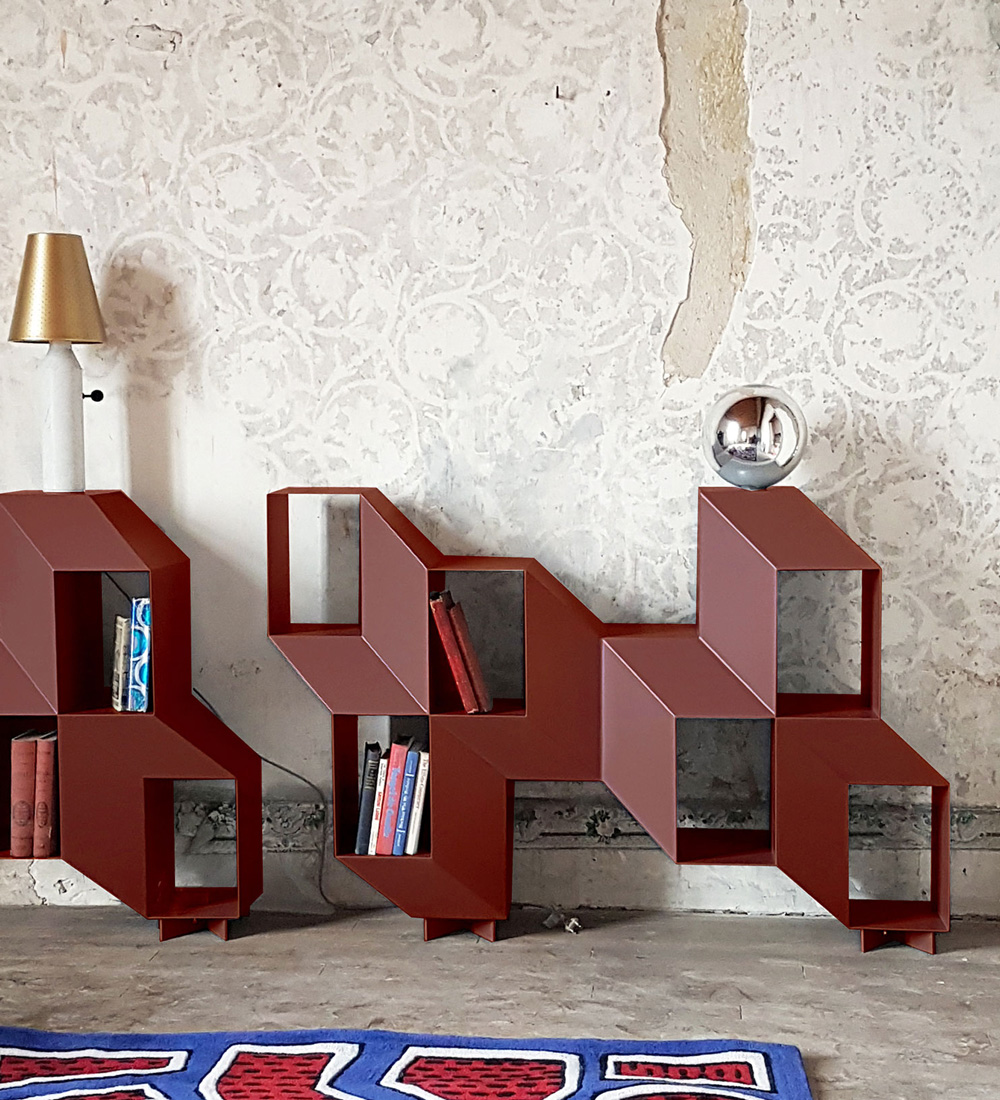 Rocky is a sculptural piece. It can be used as a console or a credenza, but will also accommodate books and objects to become the most graphic display or bookshelf.