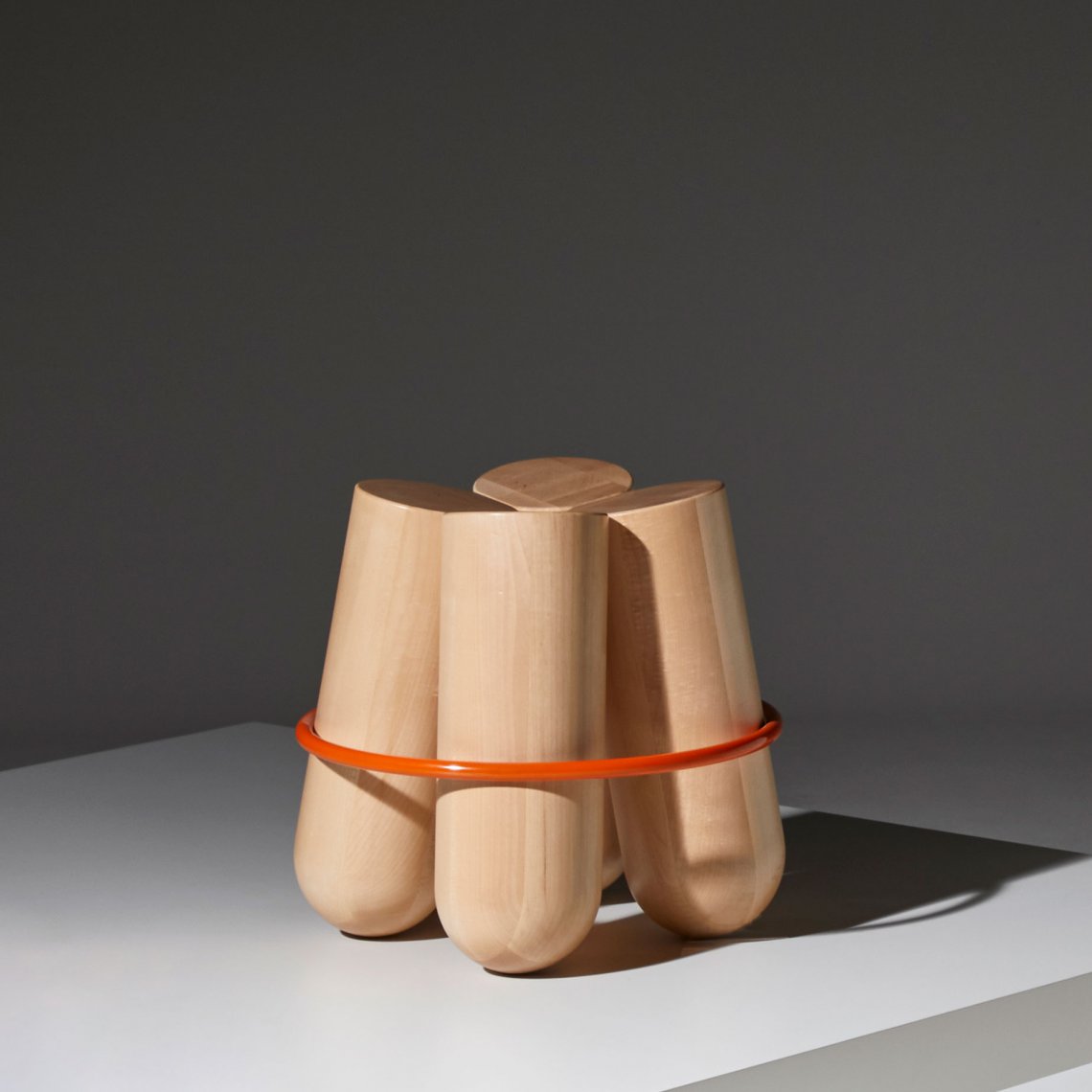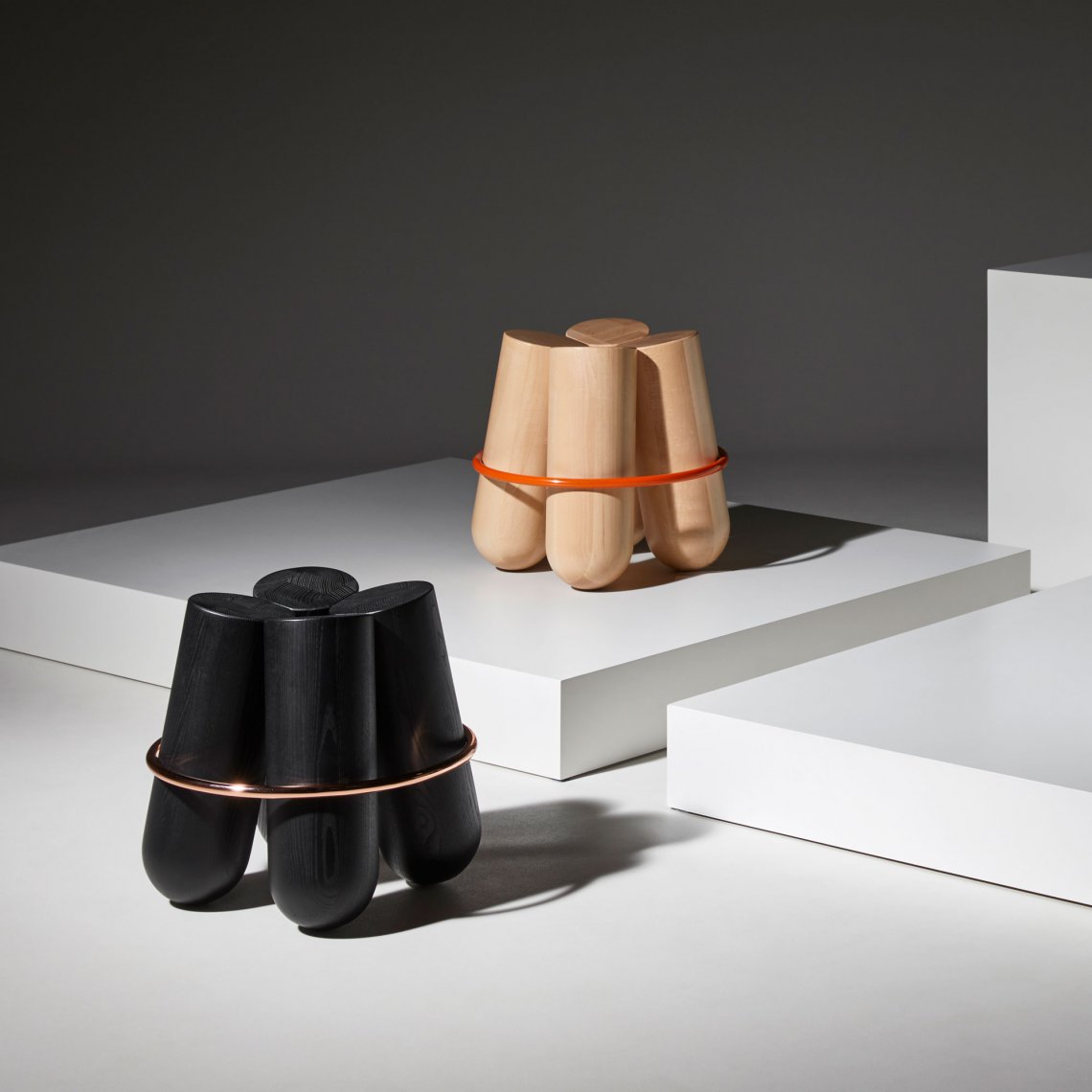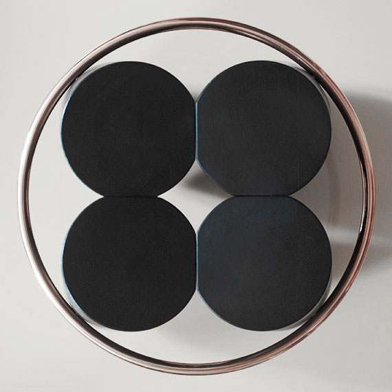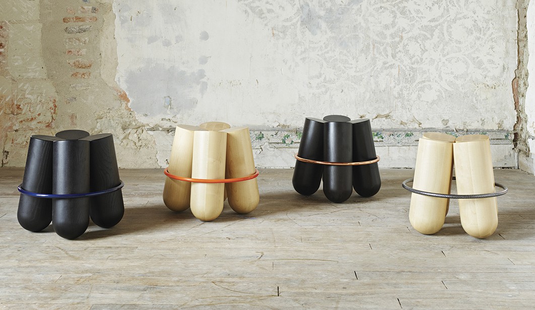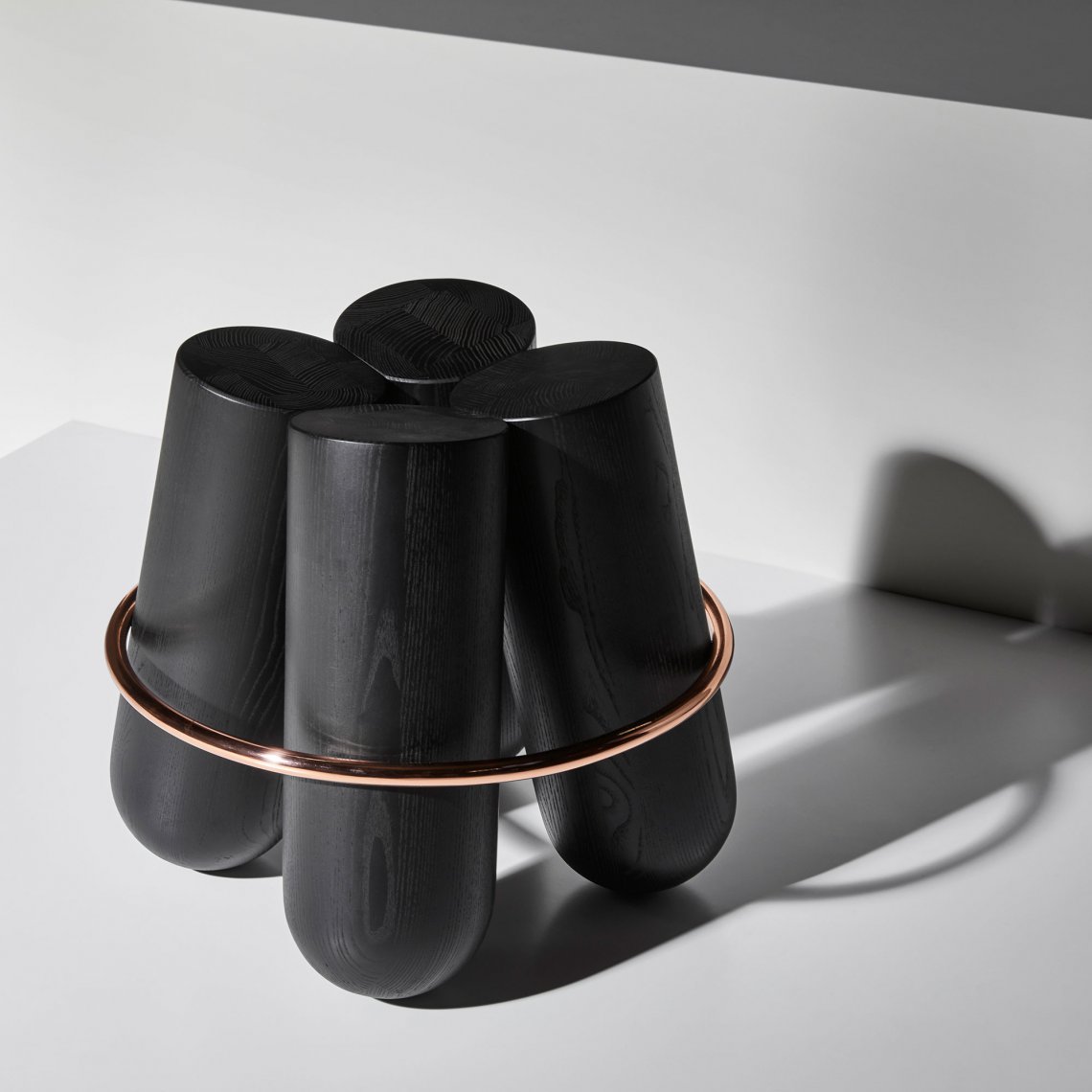 Bolt is maybe the most iconic stool of the collection. Its unique silhouette is highly recognizable with his 4 solid logs elegantly held by a contrasting metal ring. Bolt is a paradoxe: brutal and very refined at the same time. The stool is also surprisingly comfortable, it is a sculpture for daily use.