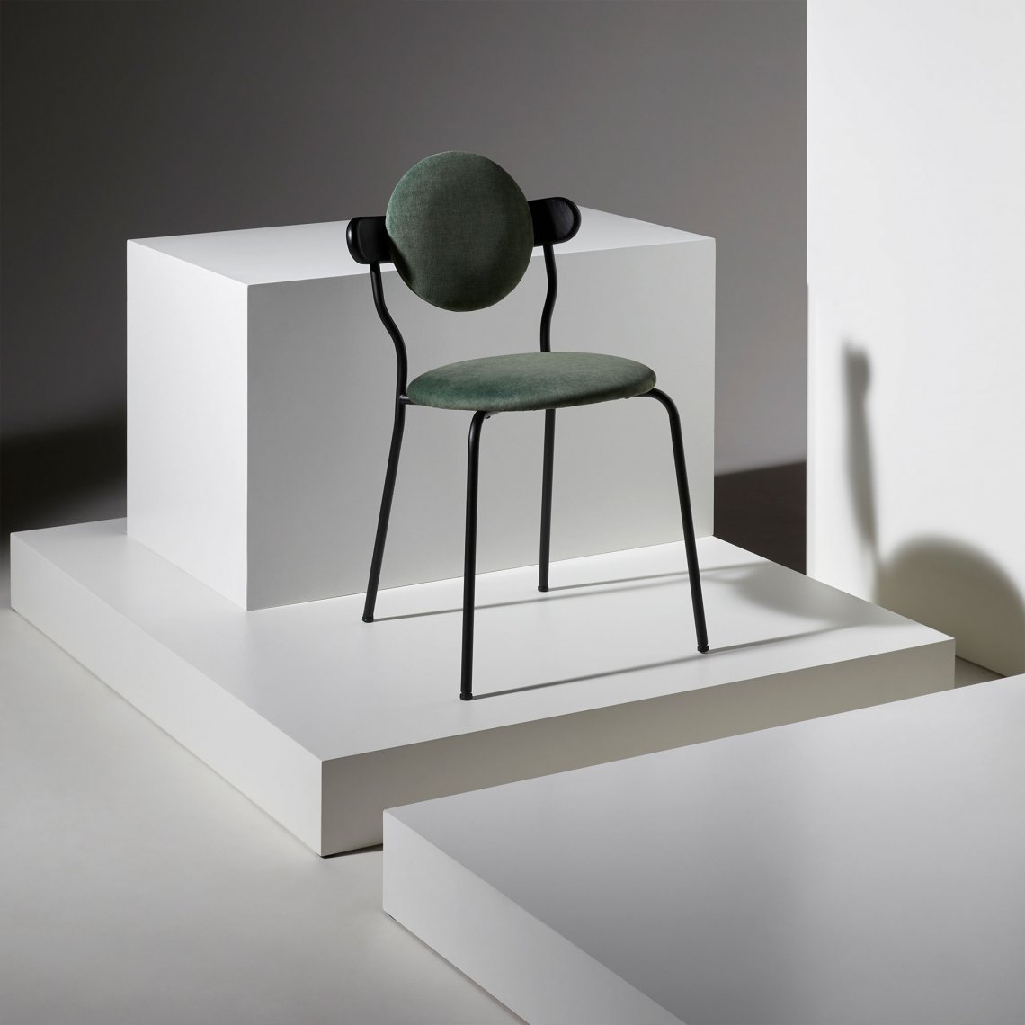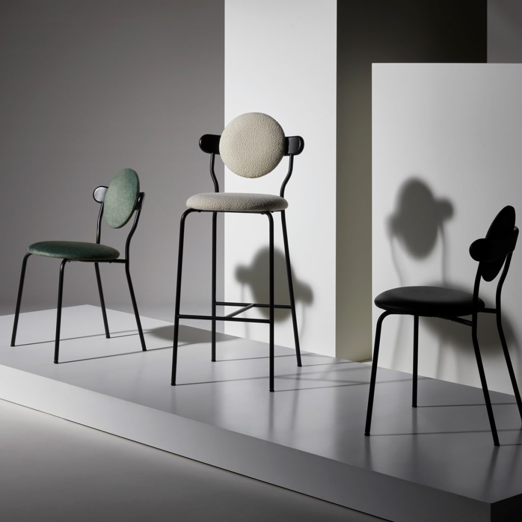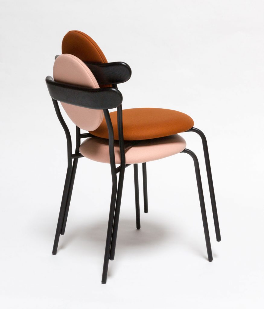 Planet is an upholstered chair inspired by the distinctive silhouette of planet Saturn. The upholstered seat and back ensures a high level of comfort, but Planet chair remains a featherweight at only six kilos for practical use every day.