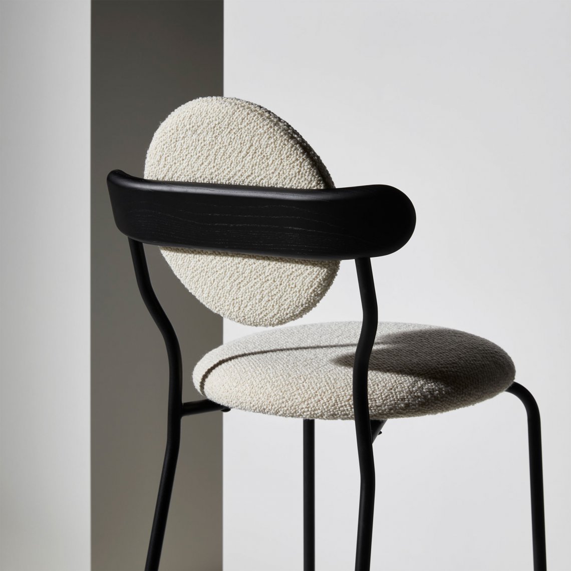 Planet bar is an upholstered high chair inspired by the distinctive silhouette of planet Saturn. The bar version of the original Planet chair offers a comfortable and practical solution to seat at the bar while keeping the same distinctive style.