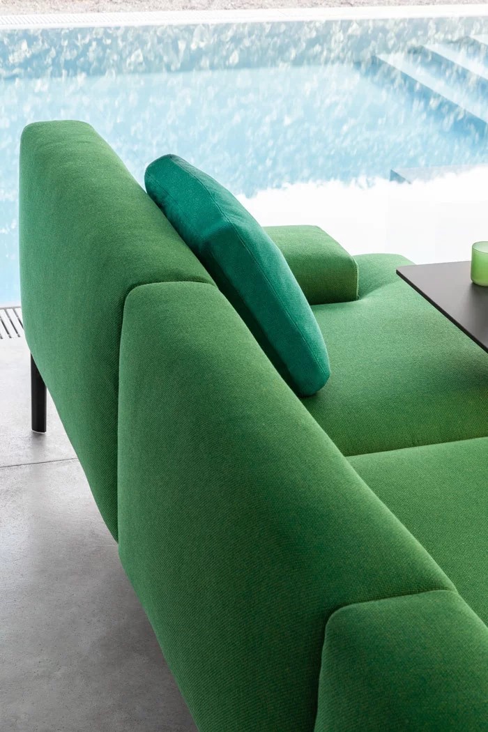 Morbido, avvolgente, profondo. ADD SOFT mantiene il carattere di un vero salotto anche in esterni. A garantire il massimo comfort è l’ampia seduta con sedili e schienale in poliuretano ignifugo, sfoderabili e rivestiti di tessuto protettivo, traspirante, impermeabile e resistente ai raggi UV. Modulare, questo elegante divano si adatta a ogni orizzonte, anche infinito.