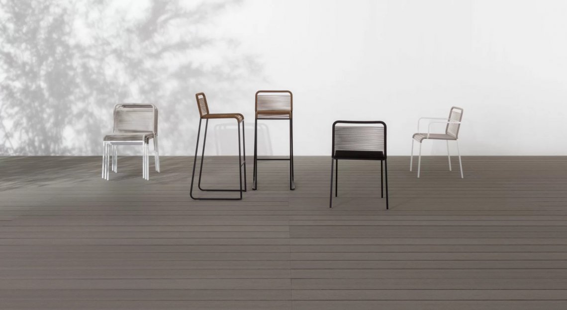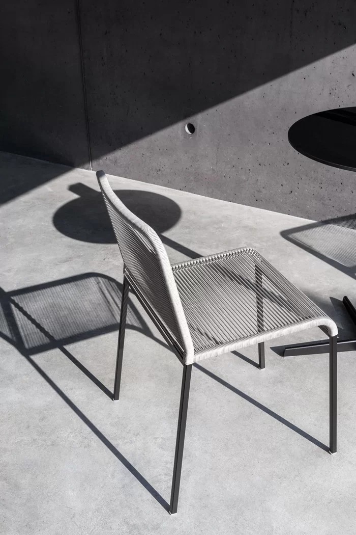 Leggera come una giornata di sole. La sedia ARIA, impilabile, ideale per ambienti esterni, è l’incontro perfetto tra il disegno essenziale e il comfort di una seduta ampia e avvolgente. A disegnare la silhouette è il tubolare d’acciaio inox a sezione quadrata e la cordatura a doppio filo ritorto di polipropilene intrecciato a mano. Ti siedi e a qualunque latitudine della terra sorridi.