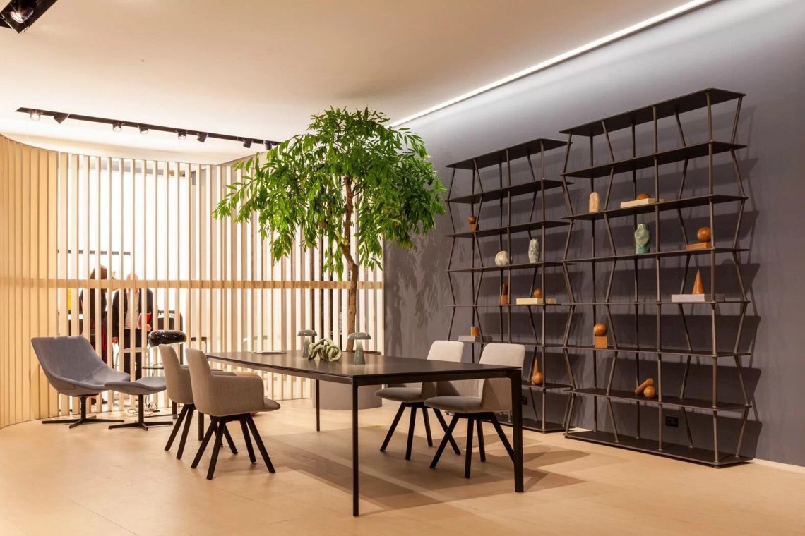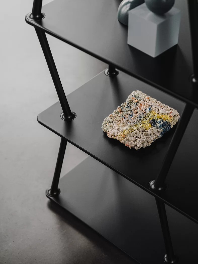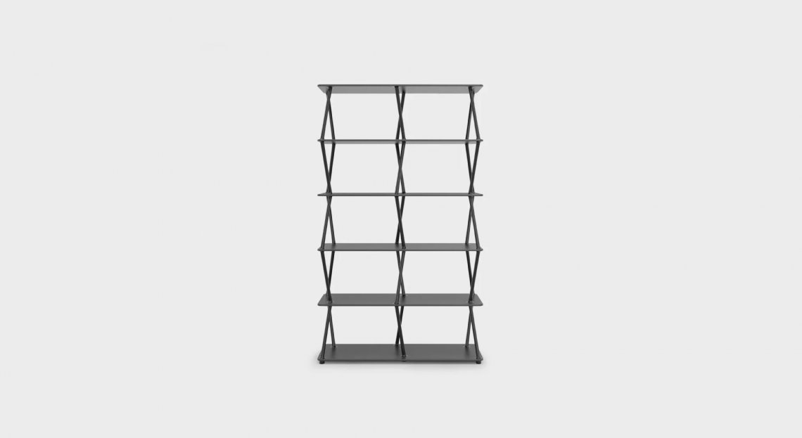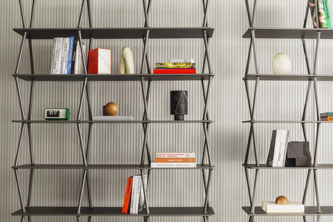 JAZZ, ispirata al genere musicale di cui prende il nome, è una libreria modulare in alluminio e legno pensata per ritmare gli spazi del vivere contemporaneo. Su un basamento profondo 38 cm a lunghezze variabili, emergono perfettamente raccordati una serie di elementi affusolati, che paiono nascere spontaneamente dal piano e propagarsi verso l'alto, come rami di un albero in direzioni opposte e inaspettate, fino a sparire fondendosi con il ripiano superiore. Sviluppando un gioco di sovrapposizioni fino all'altezza desiderata, i pioli agiscono tra loro come contrafforti regalando all’insieme una netta stabilità, soddisfacendo le più disparate esigenze progettuali di architetti e interior designer. JAZZ può essere fissata a pavimento o a parete e può essere utilizzata sia come elemento divisorio a centro stanza che come libreria a muro. Disegnata da Giuseppe Bavuso nell'ottica di un'economia circolare, JAZZ è composta da tre elementi - montanti in pressofusione di alluminio, ripiani in agglomerato di legno, giunzioni a scomparsa in acciaio inox - tutti facilmente disaggregabili e totalmente riciclabili.