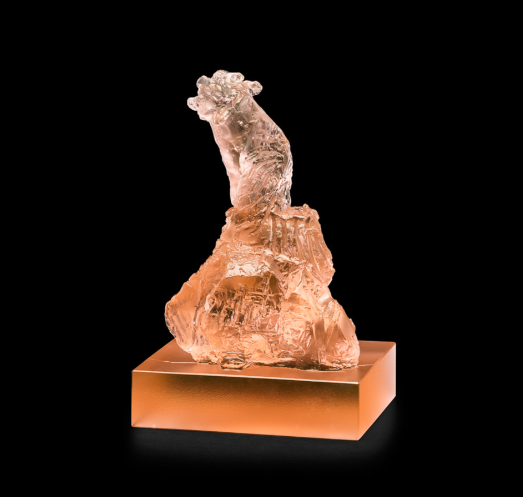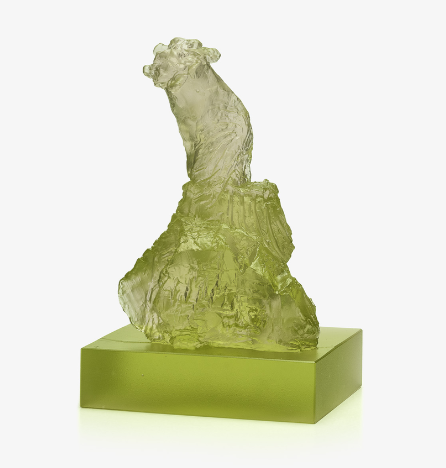 The two pieces are called Rosencrantz and Guildenstern, like the characters from Shakespeare′s Hamlet. They were born as grey clay statues and transformed into beautiful glass objects. Their final form fascinates onlookers by its color variability. The monsters are made of special glass which reacts to the light. At one moment they are completely brown, while the next they brightly shine in shades of green.