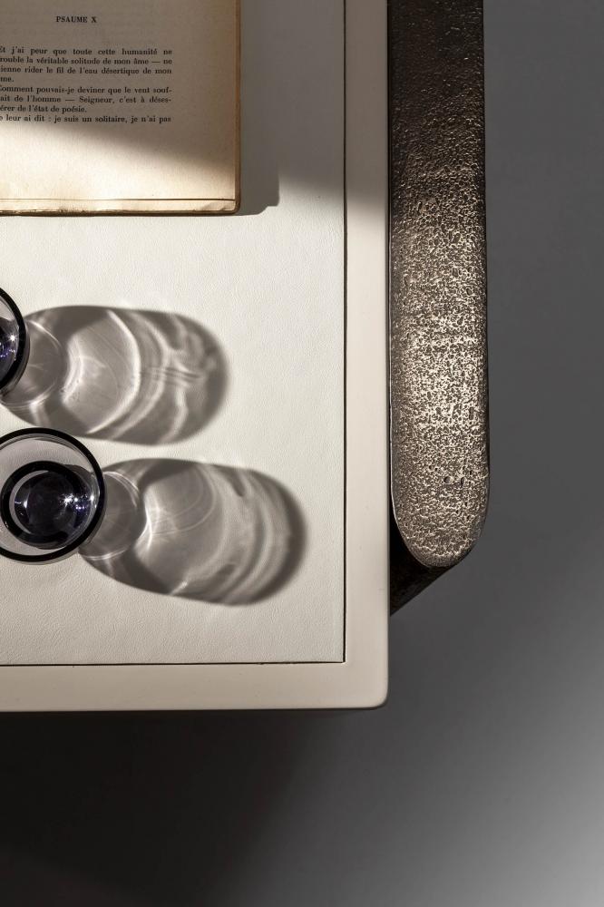 Top and chest of drawers in plain, dyed or lacquered wood in all RAL colours. Sides and handles available in brushed "gold" or in liquid metal Raptor.