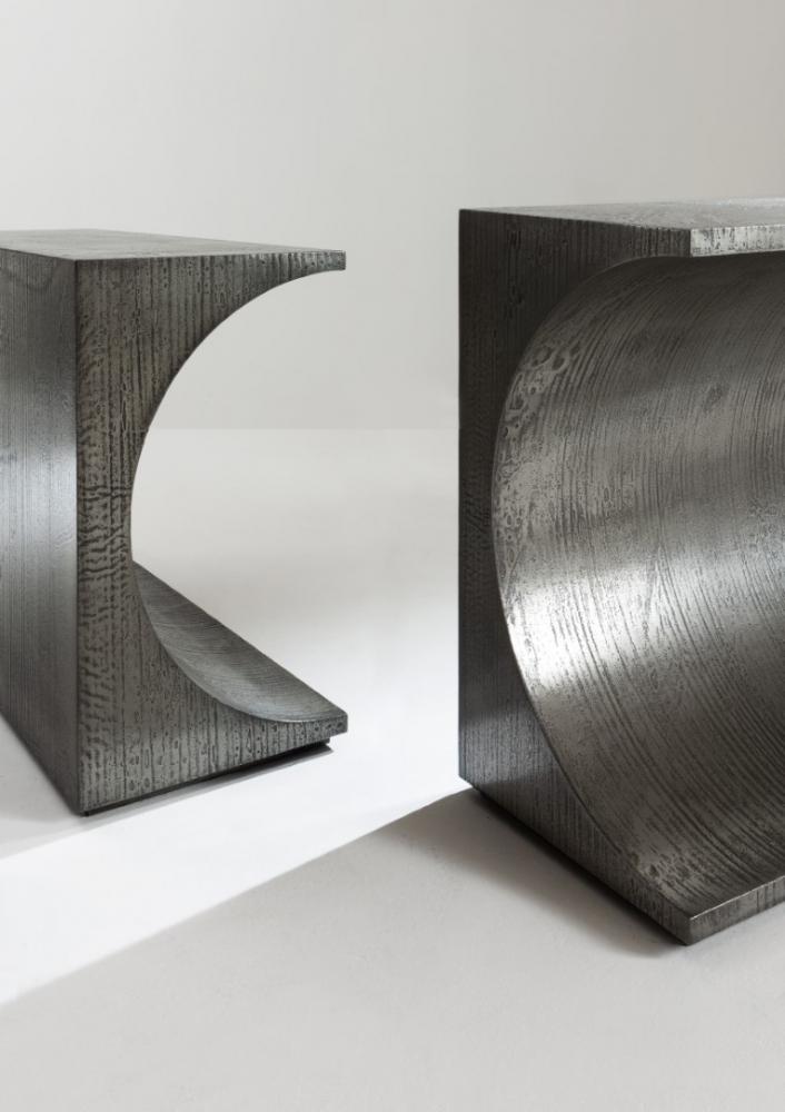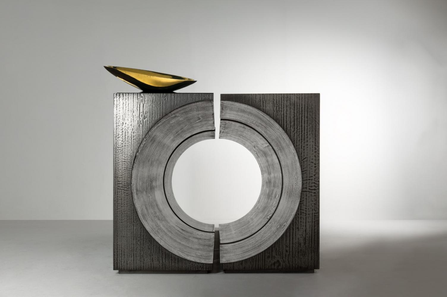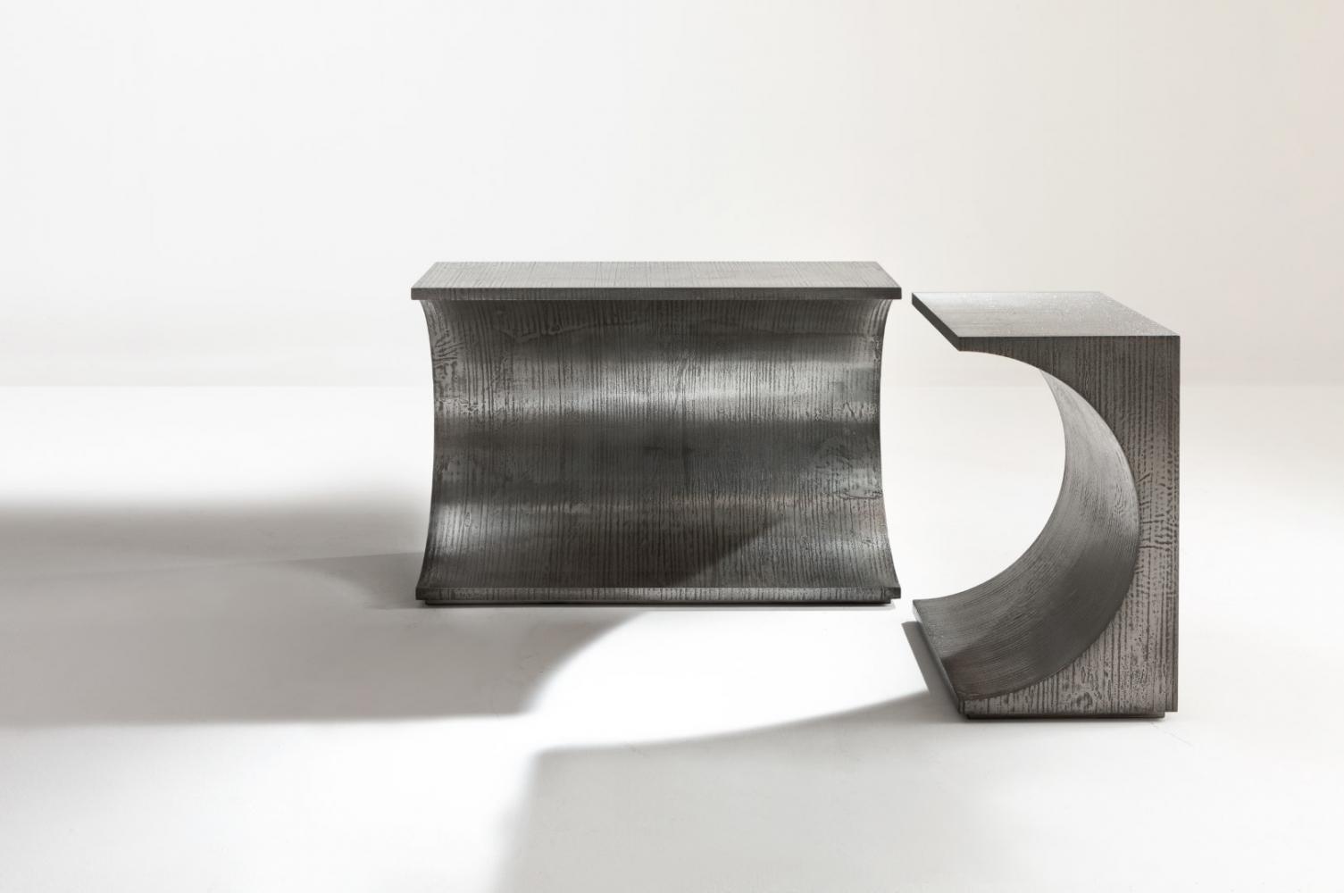 Structure available in all the woods of the collection, in aniline-dyed oak or in brushed matt lacquered wood in all RAL colours. Also available in liquid metal Raptor tin and bronze.