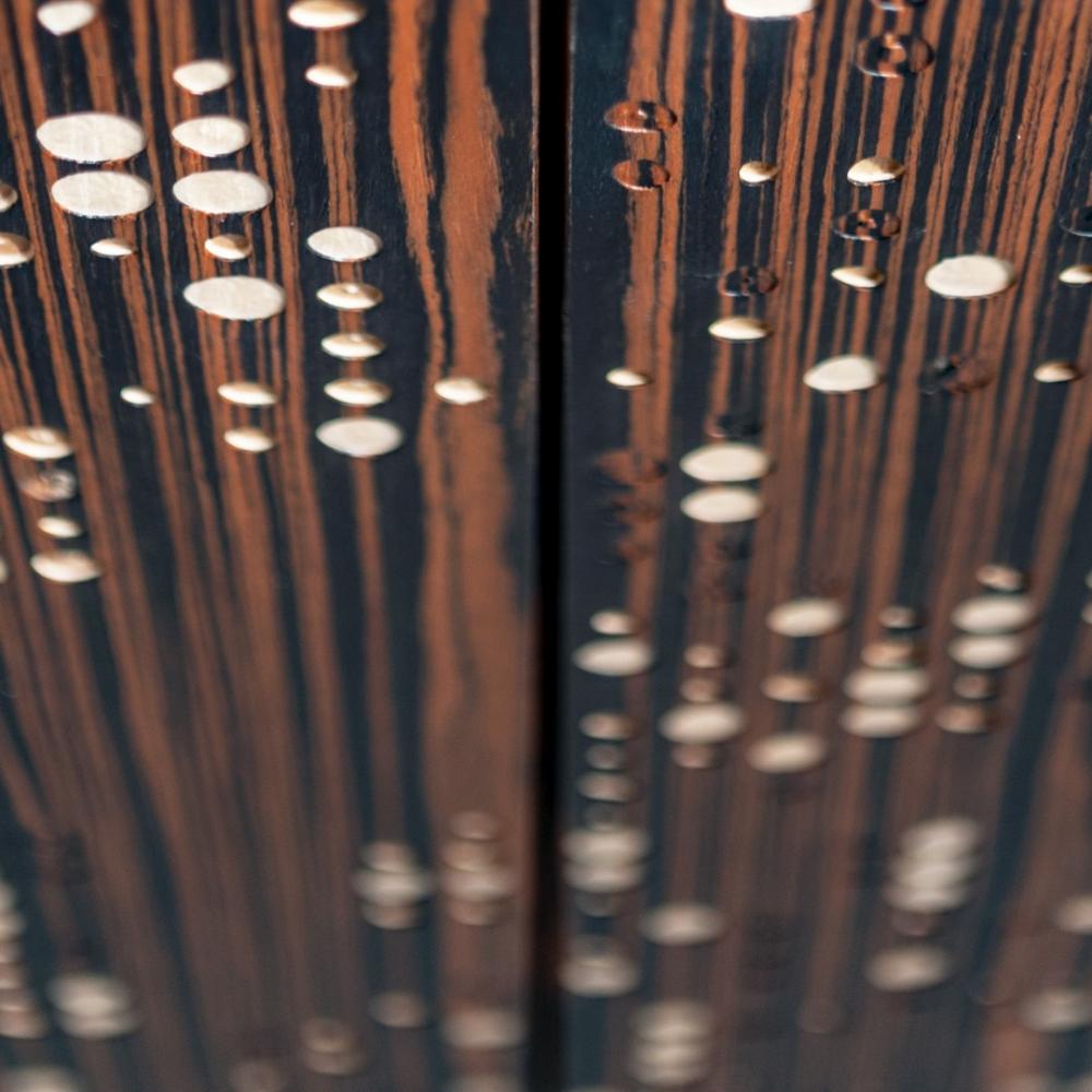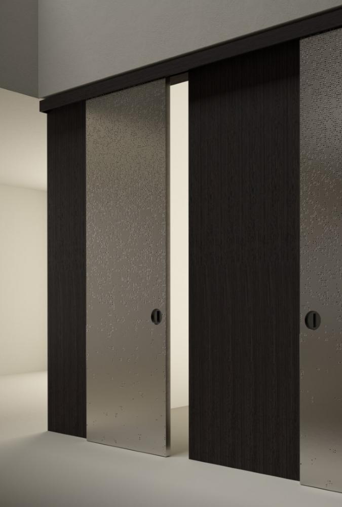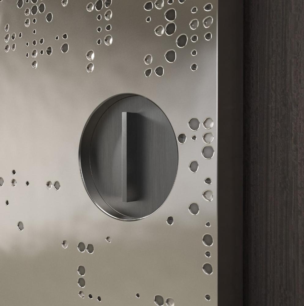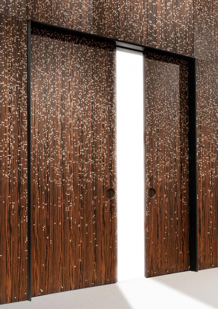 The Liquid Metal, applied on the iconic Unlimited texture, enhances the visible and tactile textures of the carving, releasing heat and energy and animating the surface of the panels with luminous and three-dimensional effects.