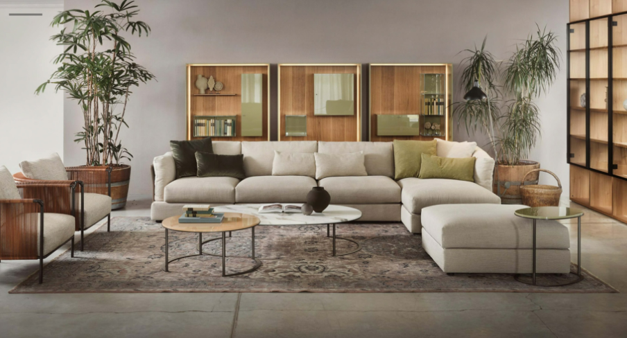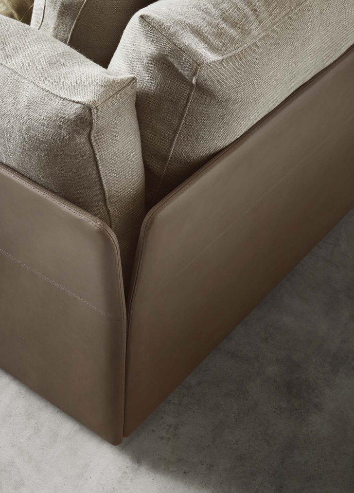 A game between rigid and soft shapes: the Groovy sofa embodies the essence of relaxation in a slender structure. A sofa that blooms with many petals, the armrests of Groovy open slightly outwards focusing on the soft cushions.