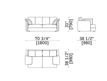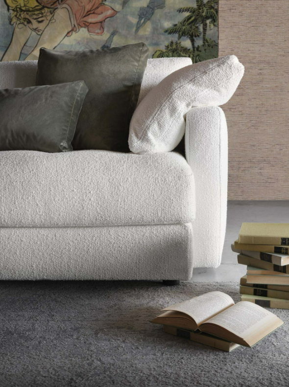 It is possible to choose the width of the central body, of the two terminals and of the pouf with a 5 cm step between the maximum and the minimum size of these sofa’s elements, in order to fully adapt them to different functional and aesthetic needs.