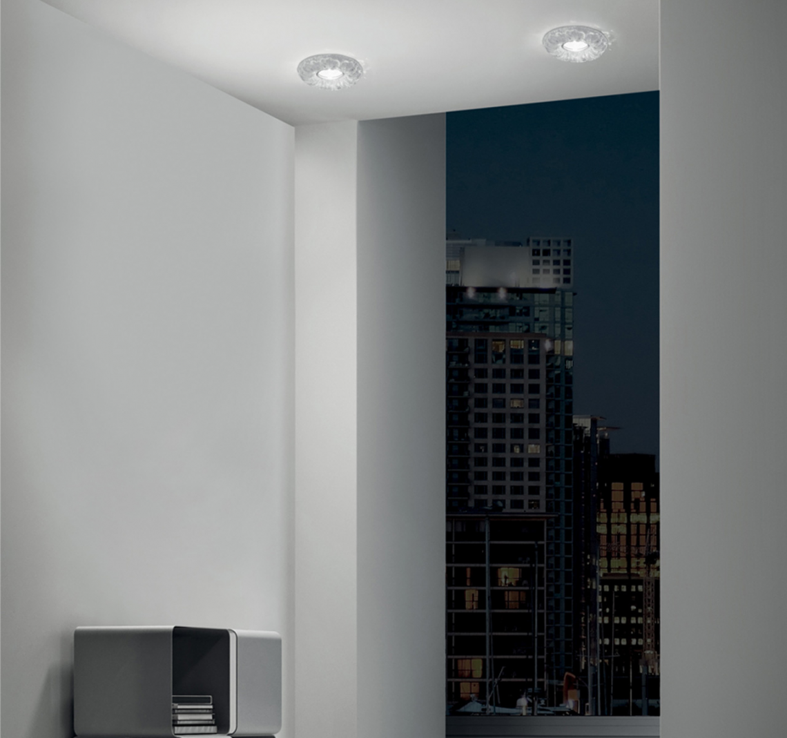 The Leucos collection of recessed downlights comprises a range of decorative lights in glass and metal. The glass decorative lights are designed or installation in a plasterboard ceiling and use the elegant and dazzling effect of transparent or satin crystal to light the areas. The metal lights are designed to be installed in a plasterboard and brick/concrete ceiling (with formwork accessory) and combine functionality and performance to provide various lighting solutions suited to every setting.