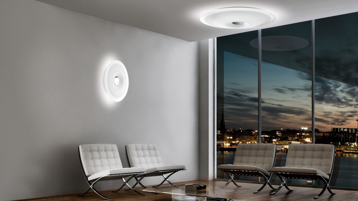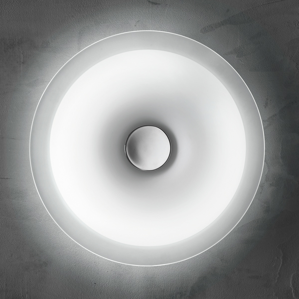 Planet è una lampada decorativa da parete e soffitto a forma di cerchio disegnata da Leucos Design Lab. Il diffusore è composto da una lastra di vetro termoformato e serigrafato di colore bianco con bordo semitrasparente. Il profilo di vetro si inarca verso l’esterno, schiacciato al centro dal bottone cromato che aggiunge interesse visivo. Sebbene Planet sia a basso profilo (ADA) ha un alto impatto visivo. Disponibile in 3 misure (32, 48 e 65 cm) Planet è una lampada con un sorprendente effetto decorativo se utilizzata in multipli.