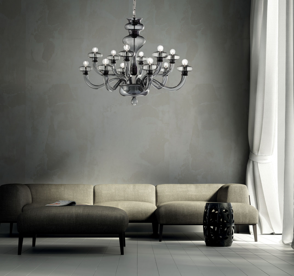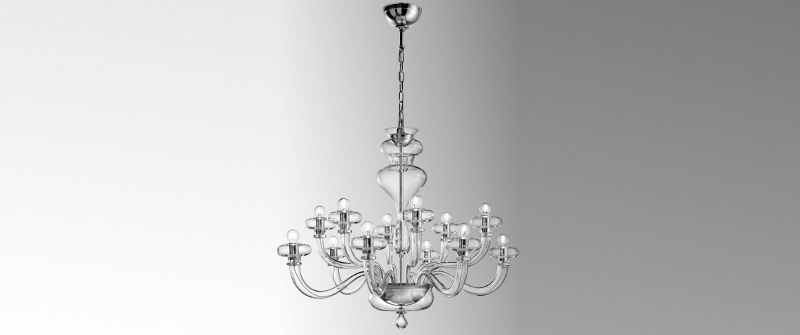 Boheme, disegnato da Oriano Favaretto, è un bellissimo gioco di forme semplici e contemporanee che formano un classico lampadario veneziano in vetro soffiato e lavorato a mano. Disponibile in 2 dimensioni (lampadari a 8 e 12 bracci) e 2 opzioni di finitura (trasparente e fumé).