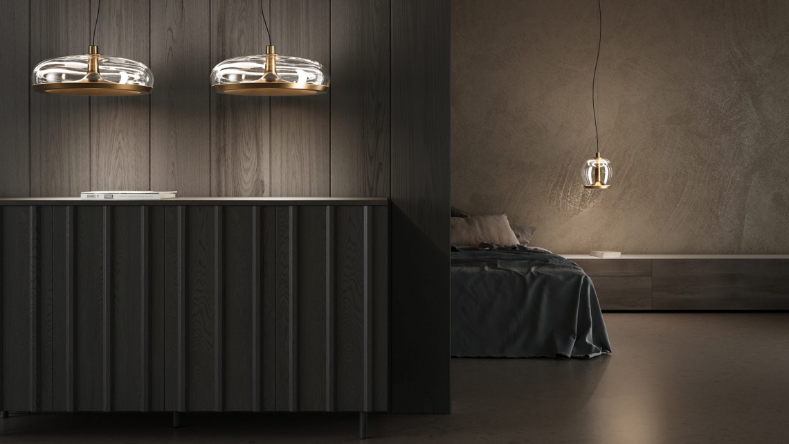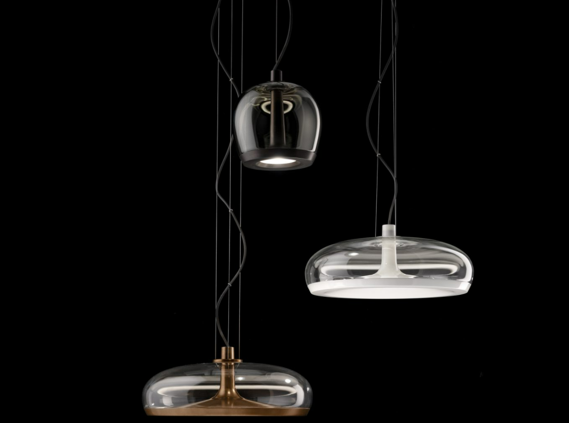 Aurelia è una collezione di lampade a sospensione disegnata da Patrick Jouin. Il diffusore in vetro soffiato a bocca avvolge la struttura in metallo che ospita due sorgenti luminose a LED. Entrambe dimmerabili indipendentemente, le due sorgenti luminose offrono la possibilità di accensione singola o simultanea, creando sia luce morbida diretta che riflessi indiretti sorprendenti e inattesi. Aurelia è disponibile in due forme e dimensioni (Aurelia S 45 e Aurelia Bold S 22) e sei combinazioni tra vetro (trasparente o grigio fumè) e struttura metallica (ottone vintage rifinito a mano